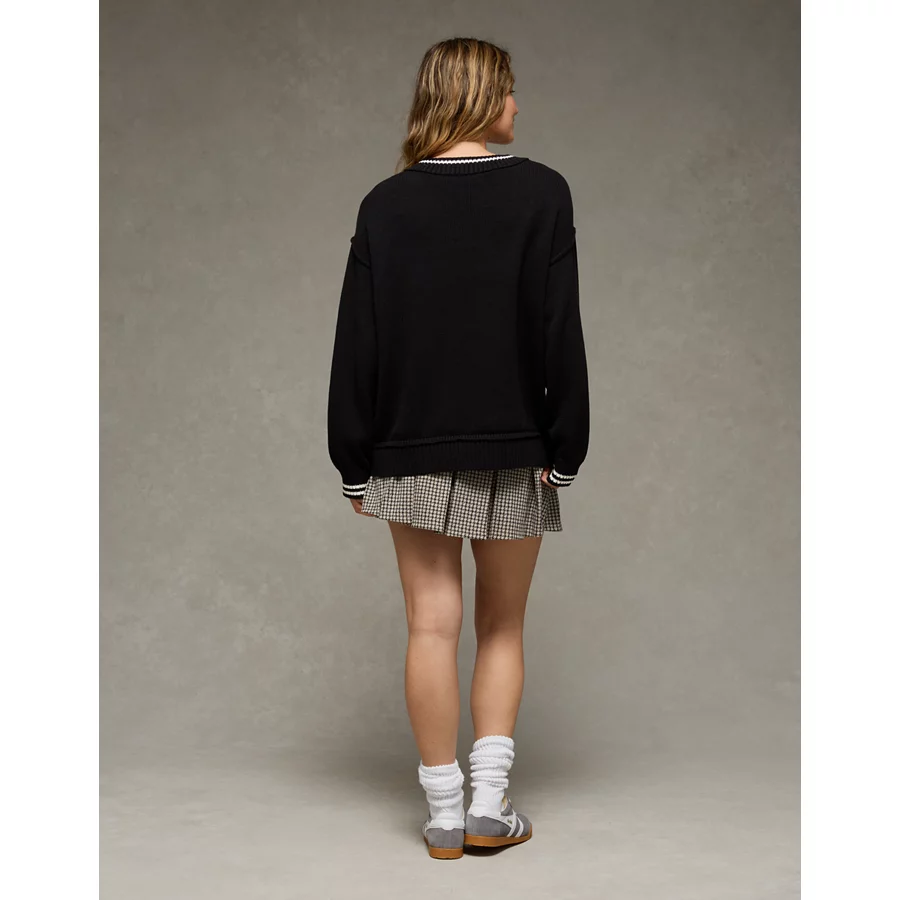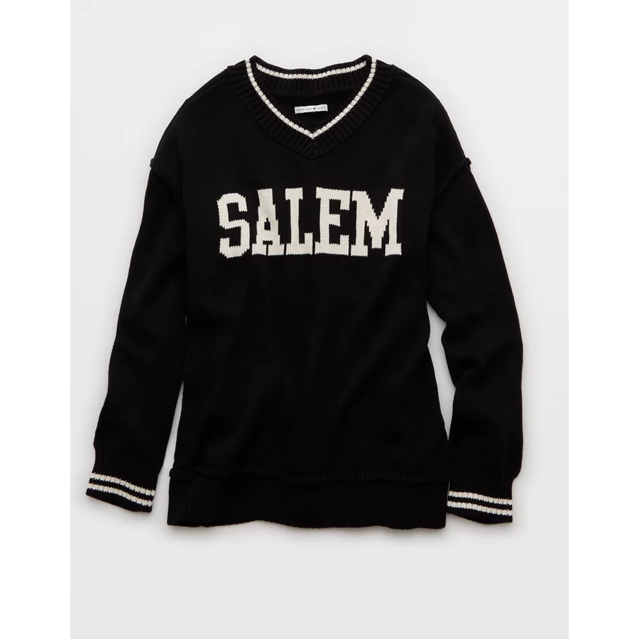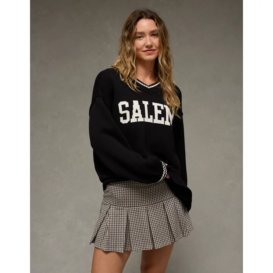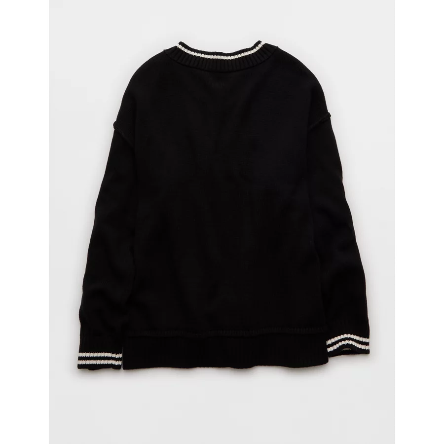 AE Oversized V-Neck Halloween Graphic Sweater – Black