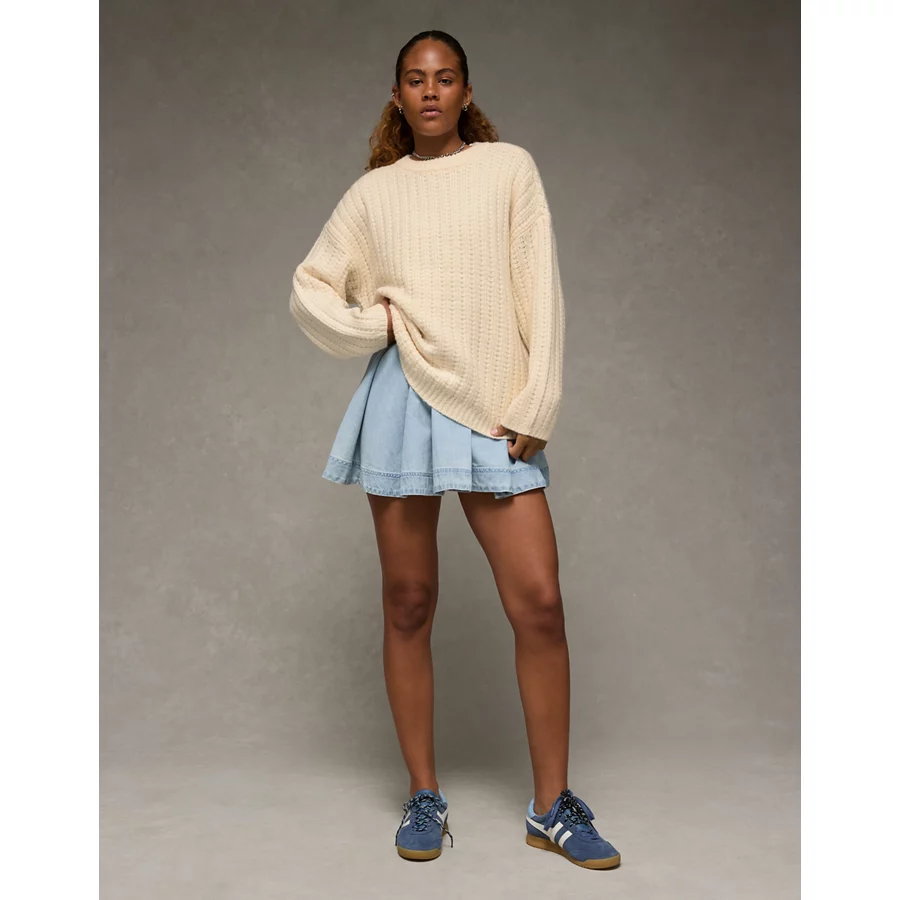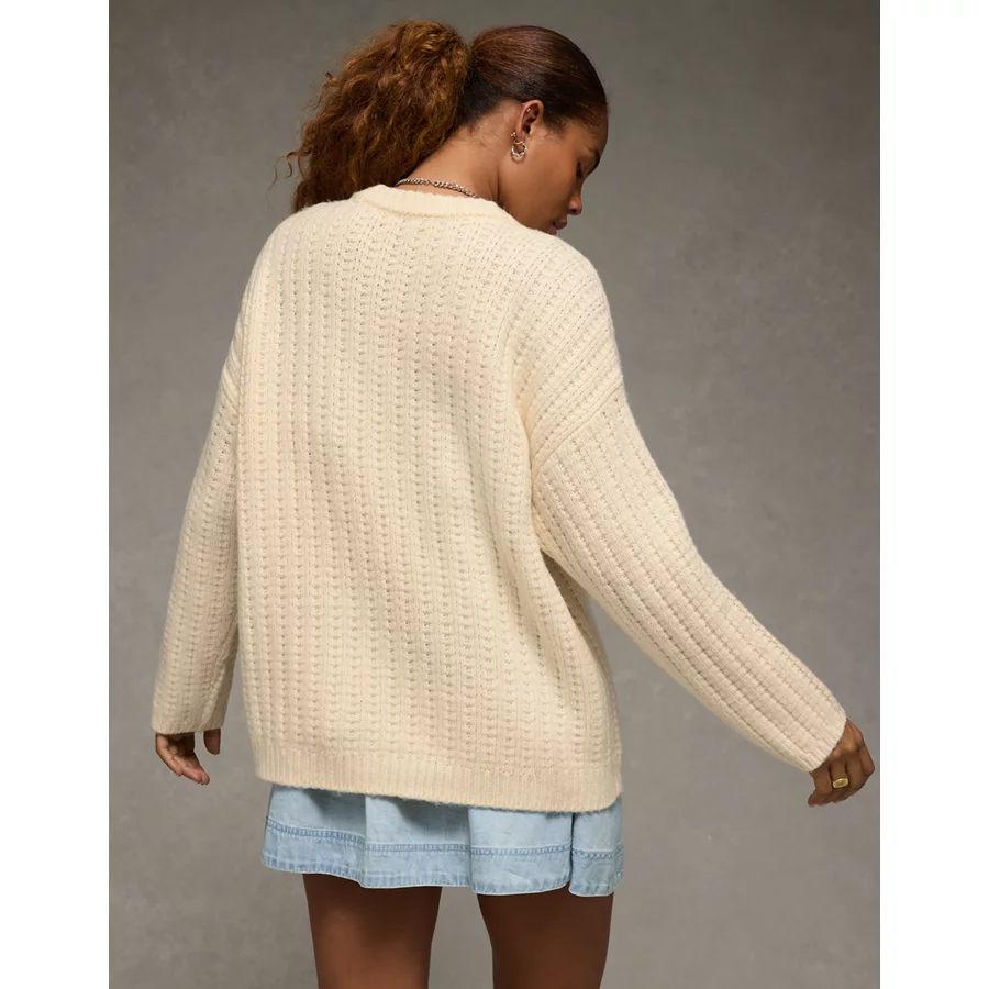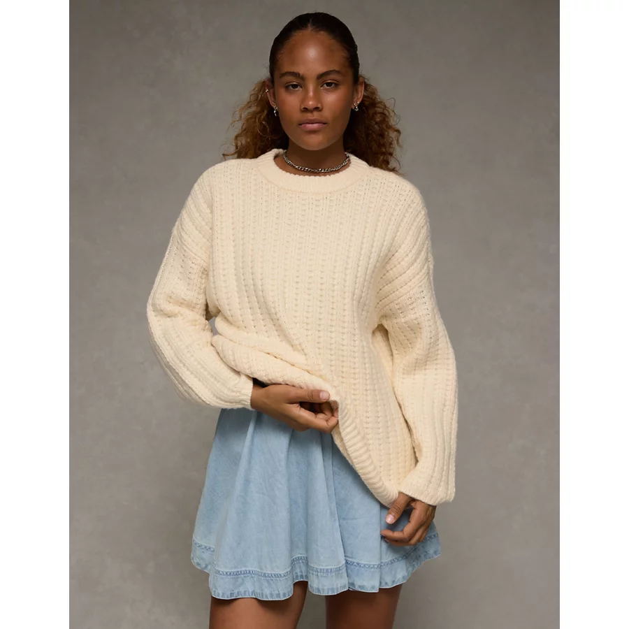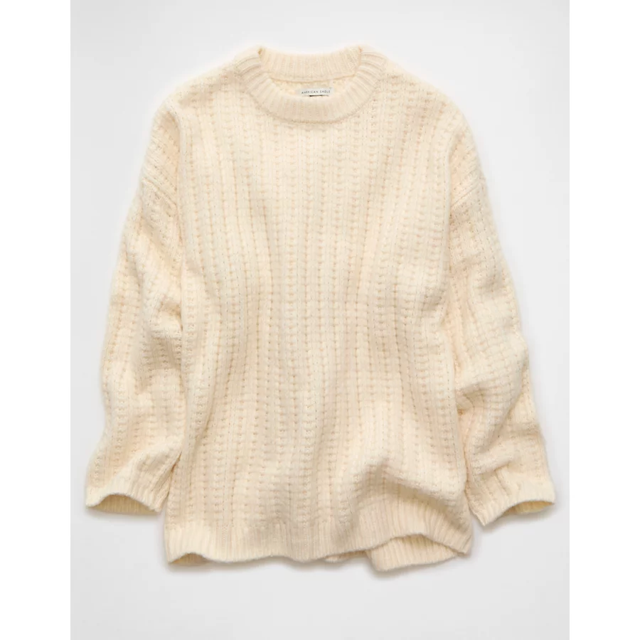 AE Oversized Waffle Sweater – Cream