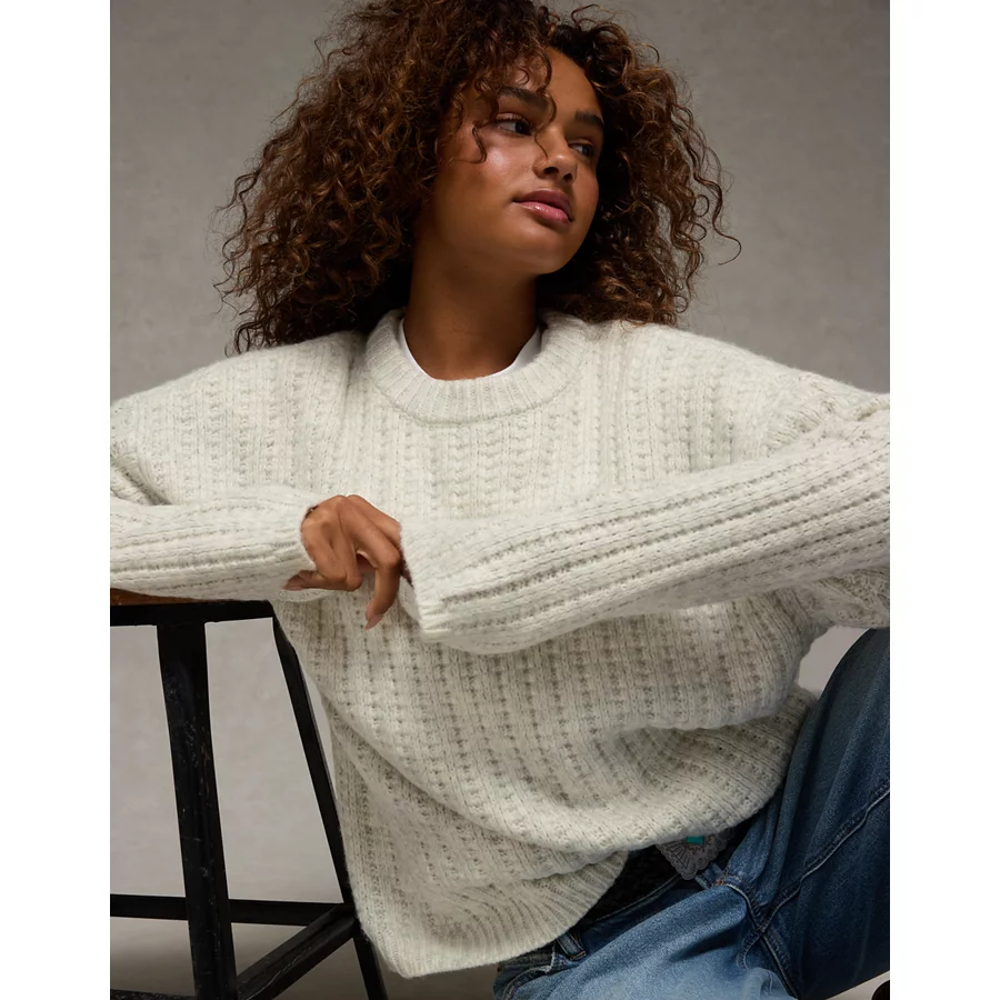 AE Oversized V-Neck Halloween Graphic Sweater - Black