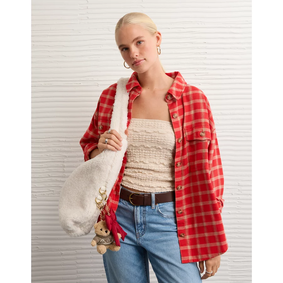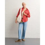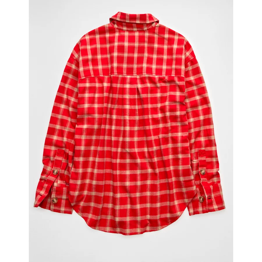 AE Plaid Button-Up Shirt – Red