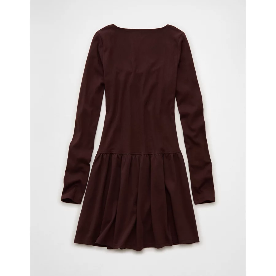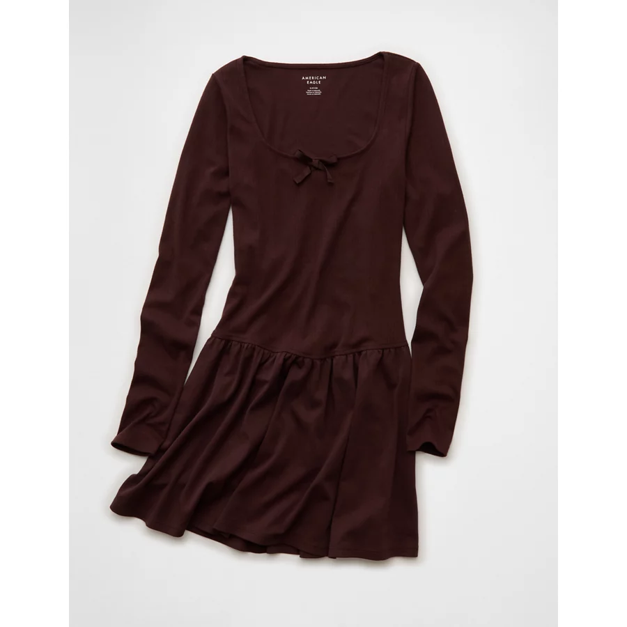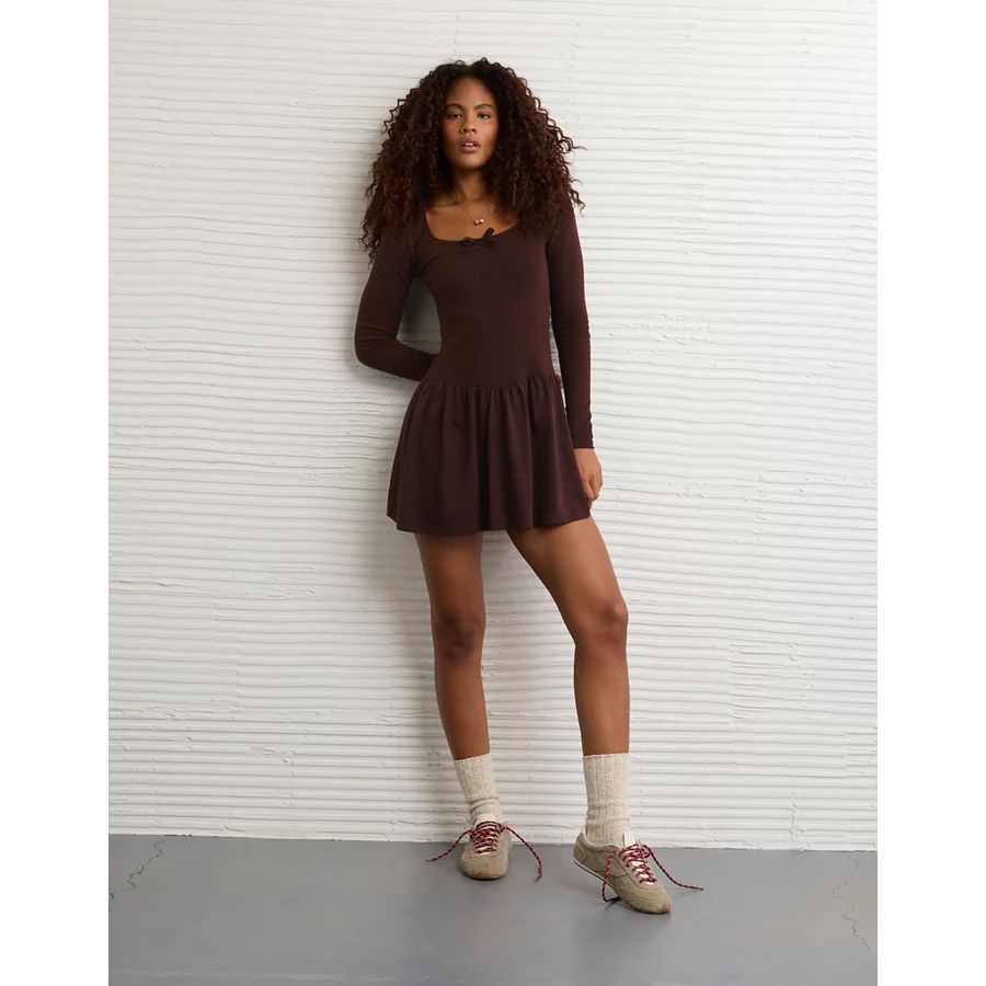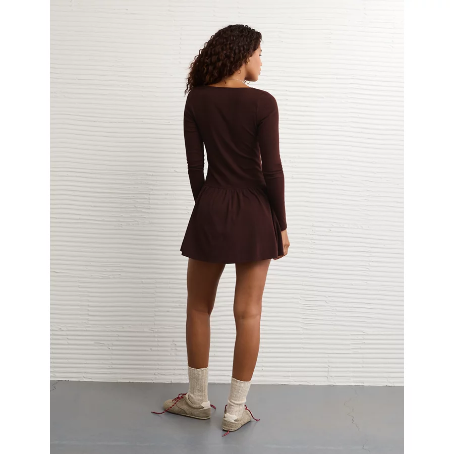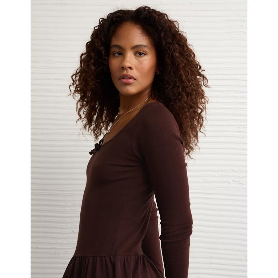 AE Pointelle Puff Sleeve Mini Dress – Brown