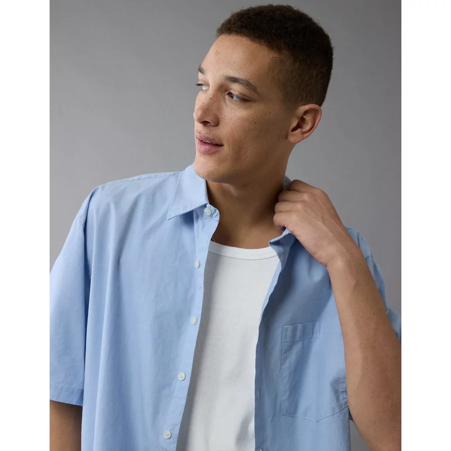 AE Poolside Button-Up Shirt – Light Blue