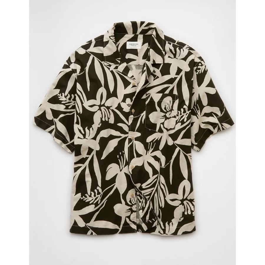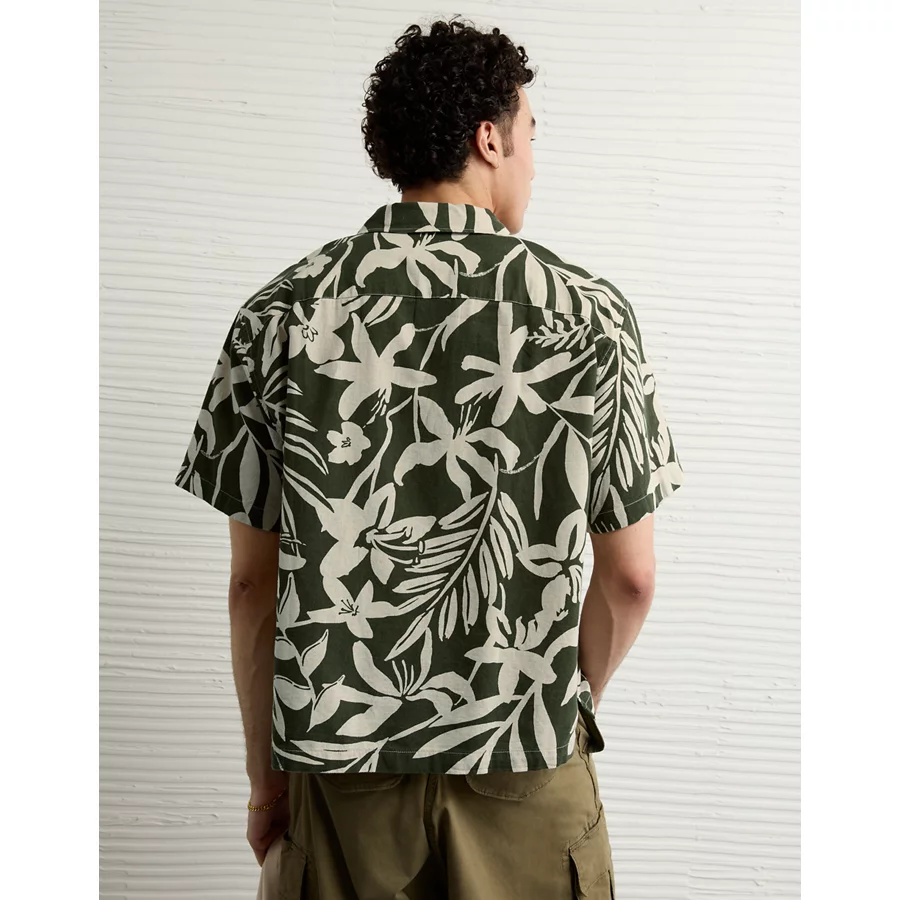 AE Poolside Floral Button-Up Shirt – Green