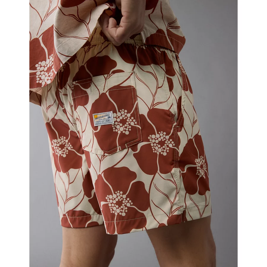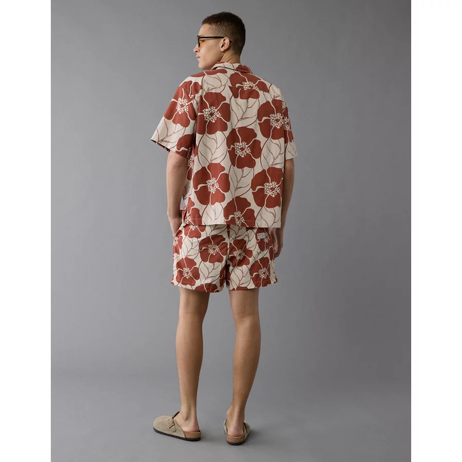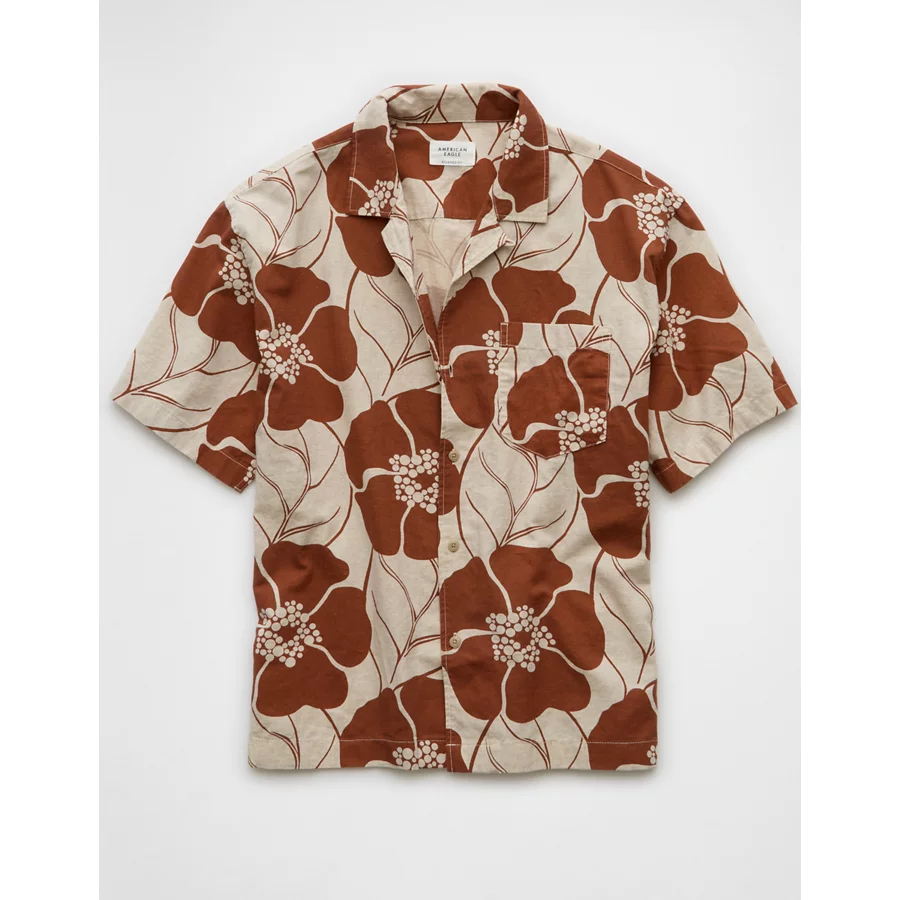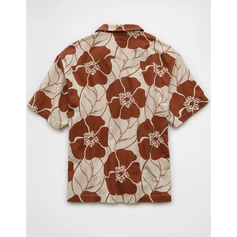 AE Poolside Floral Button-Up Shirt – Rust