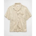 AE Poolside Linen-Blend Floral Button-Up Shirt – Khaki