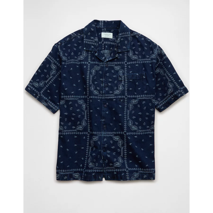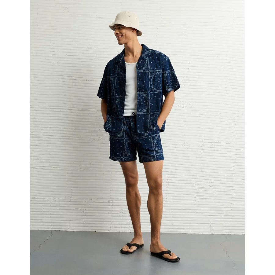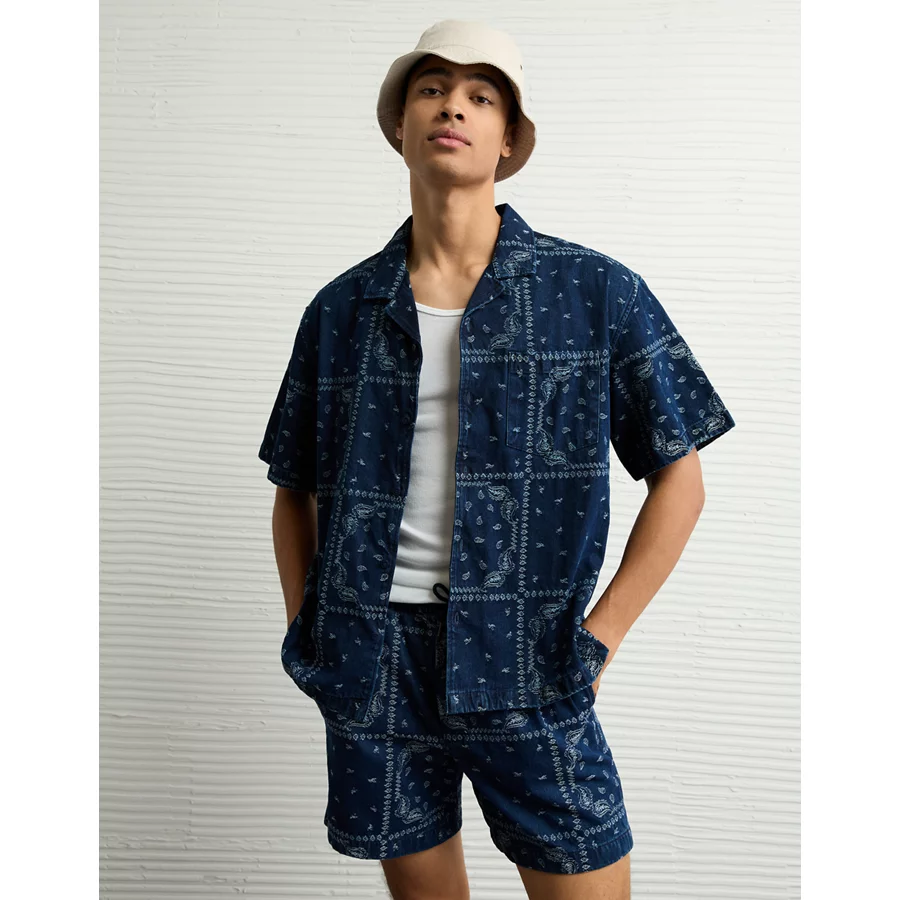 AE Poolside Printed Button-Up Shirt - Navy