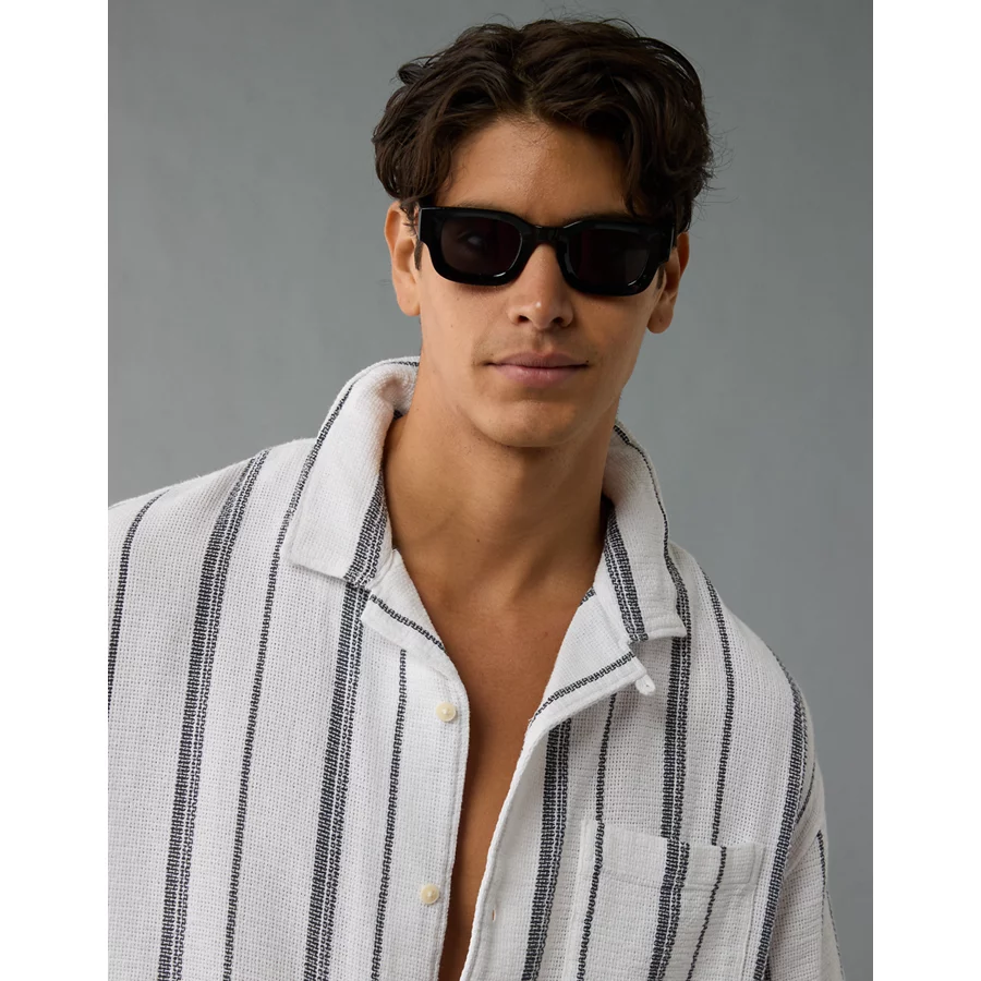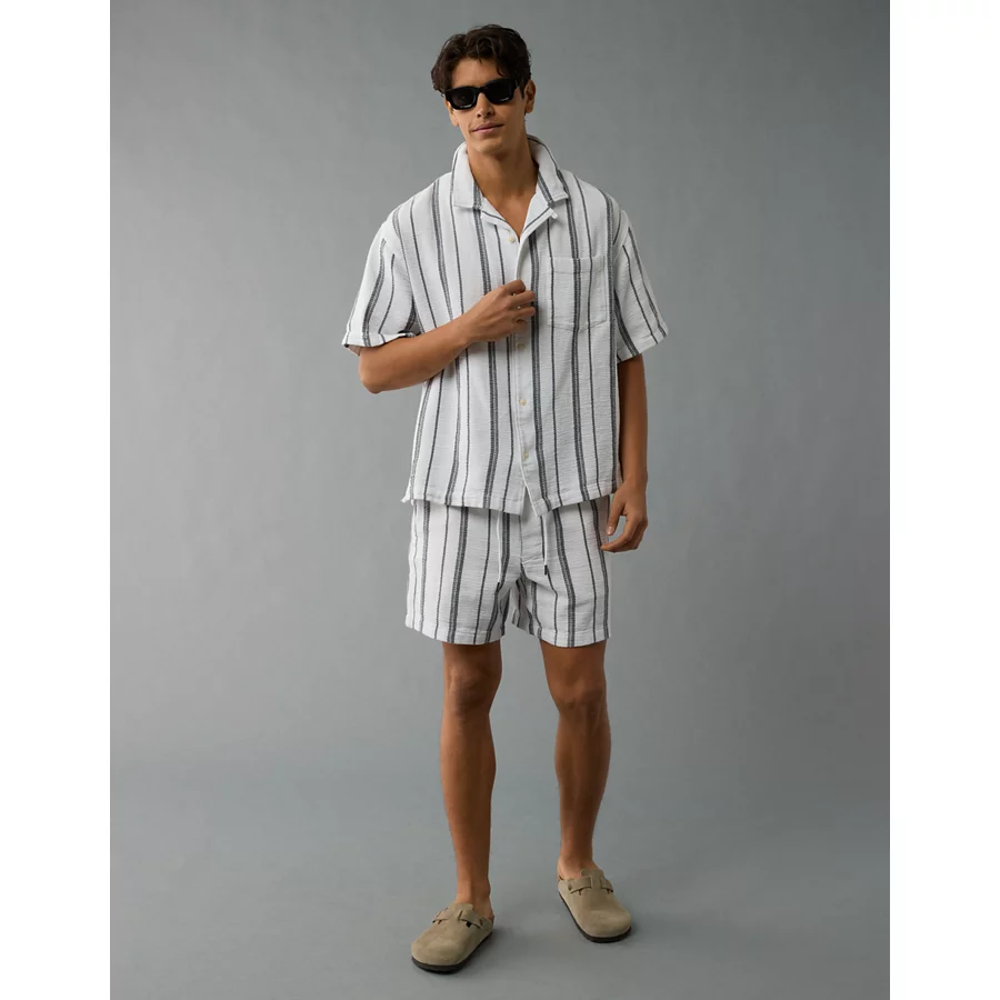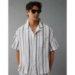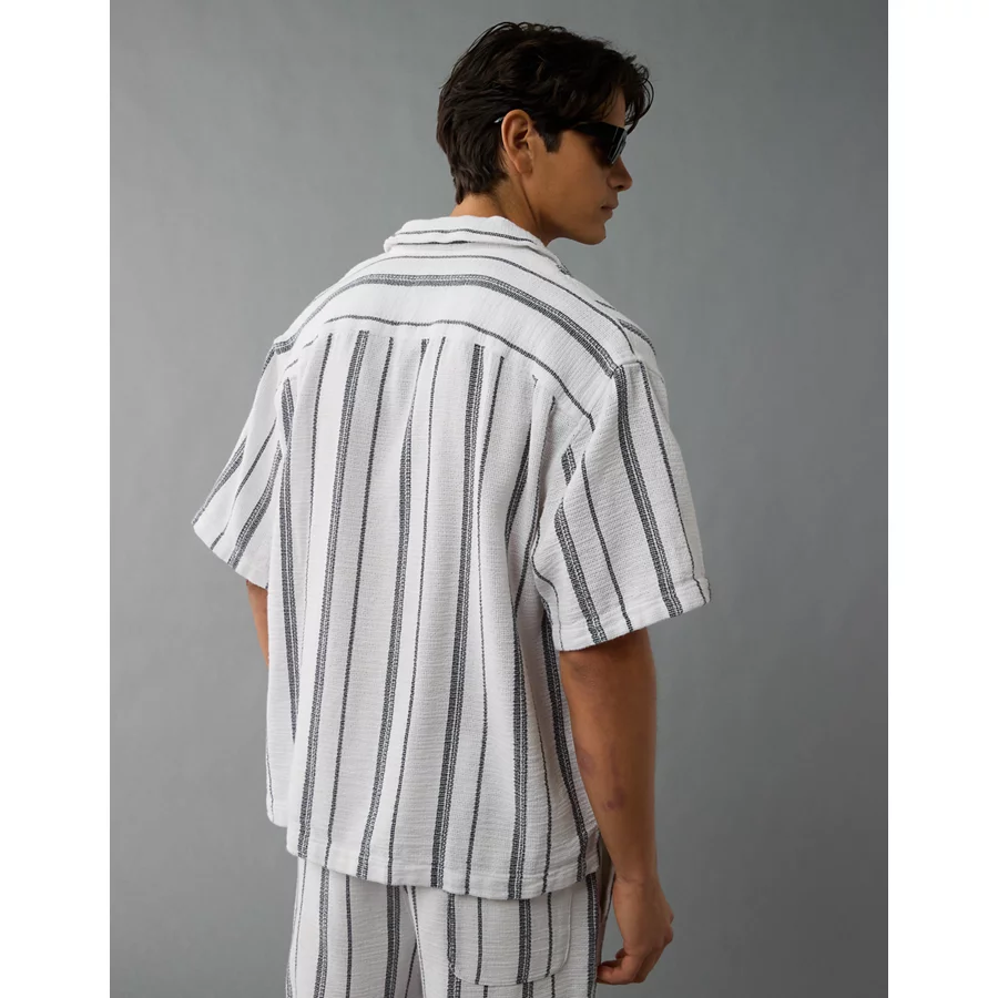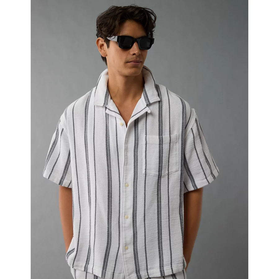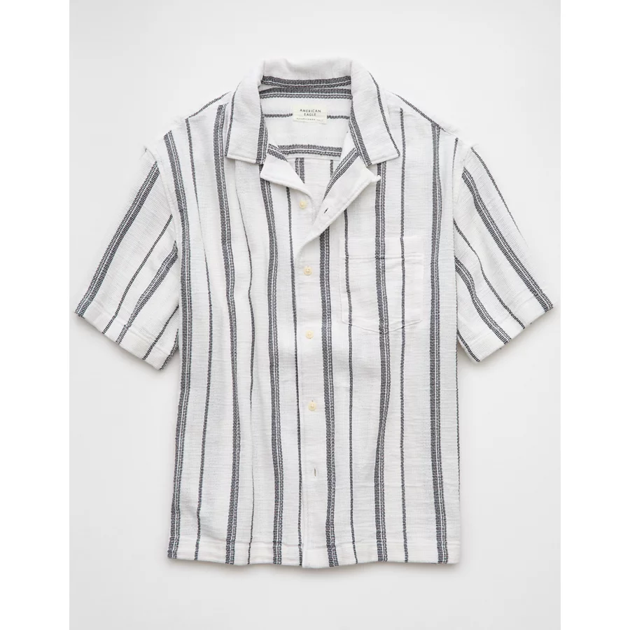 AE Poolside Striped Button-Up Shirt – White