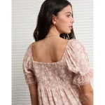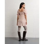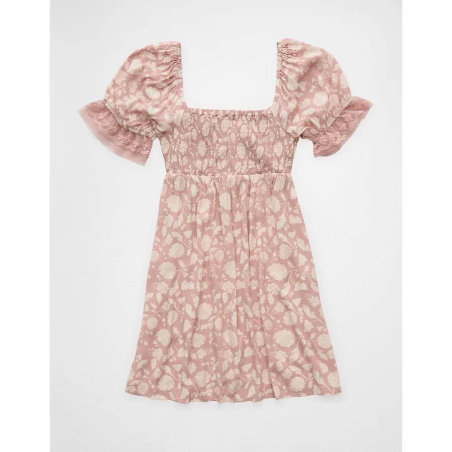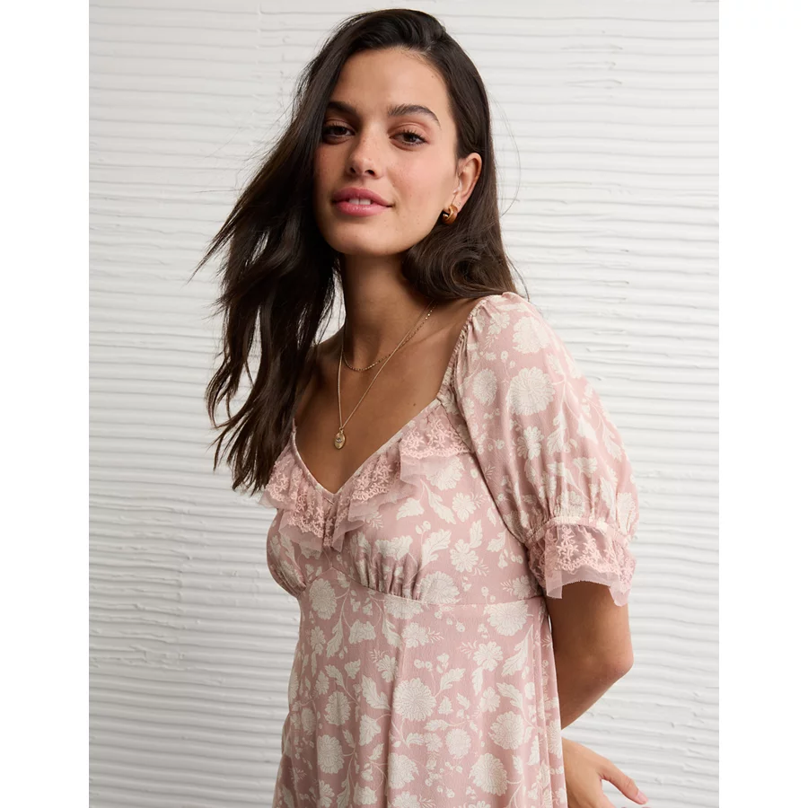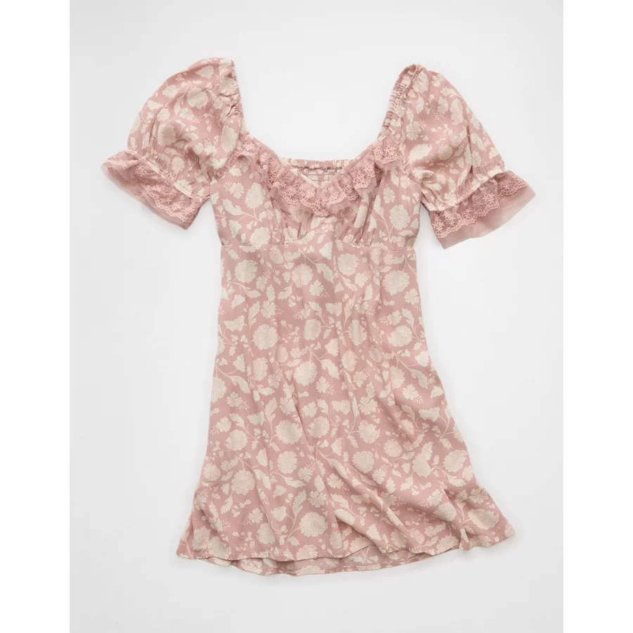 AE Printed Lace Tie Front Mini Dress – Dusty Pink