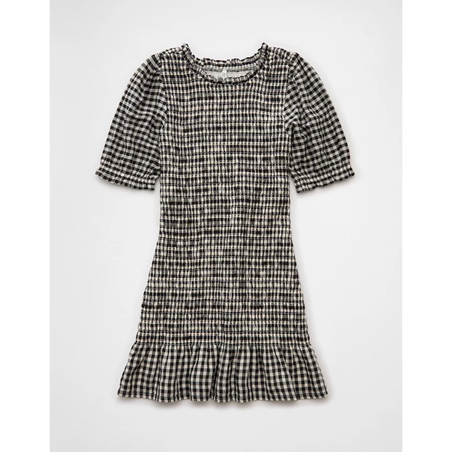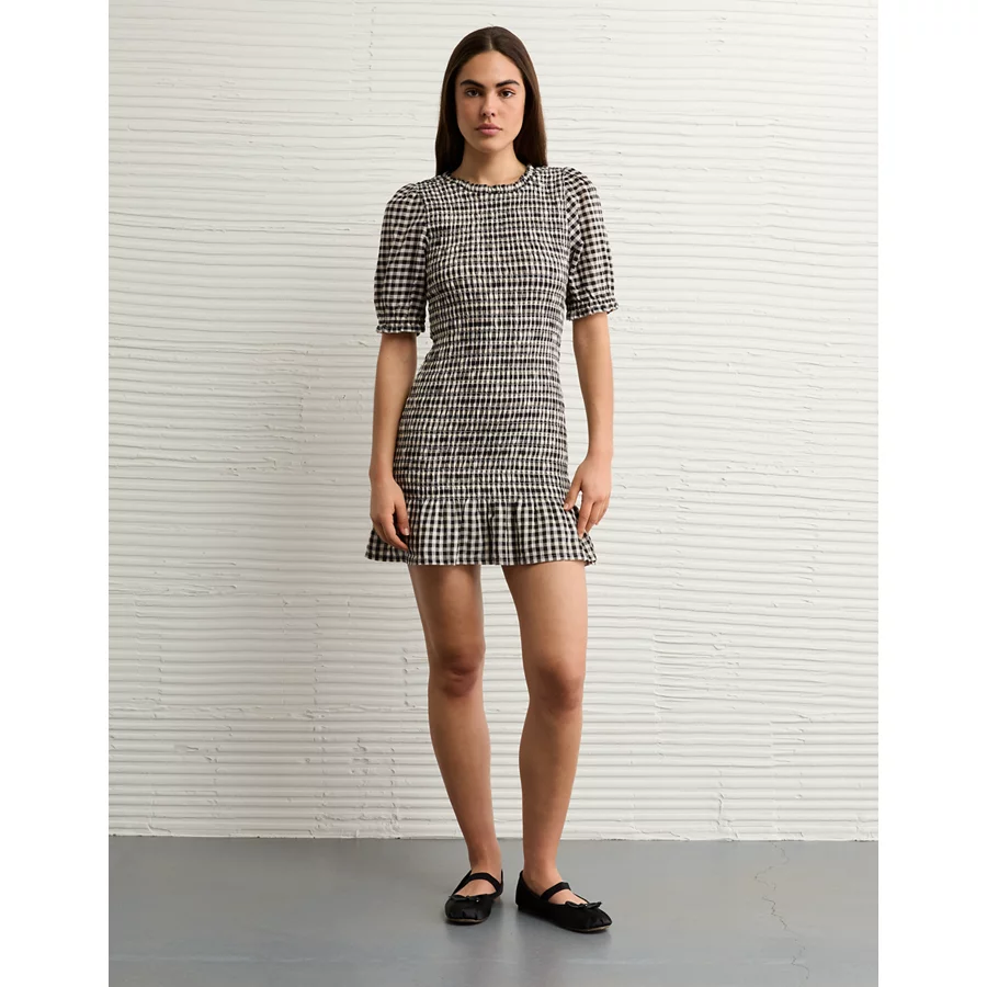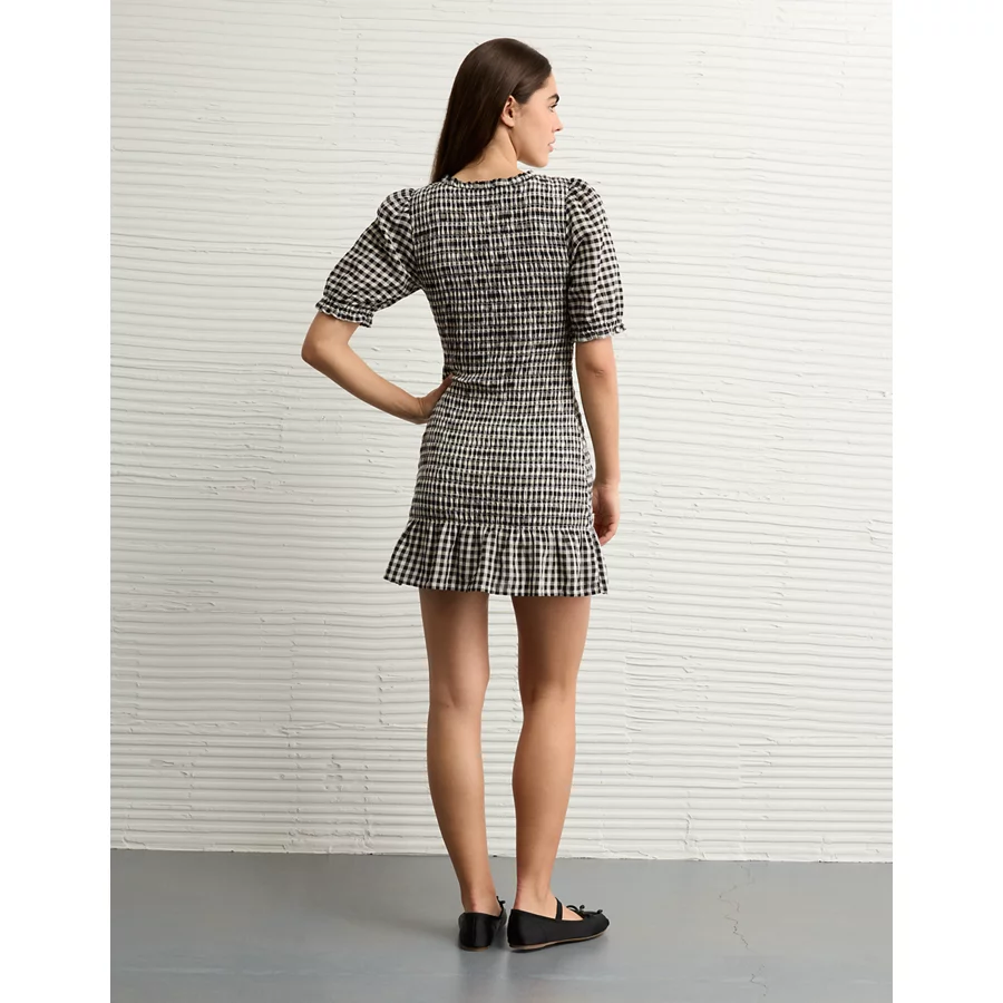 AE Puff Sleeve Smocked Mini Dress – Black