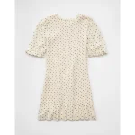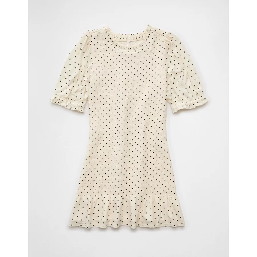 AE Puff Sleeve Smocked Mini Dress – Cream