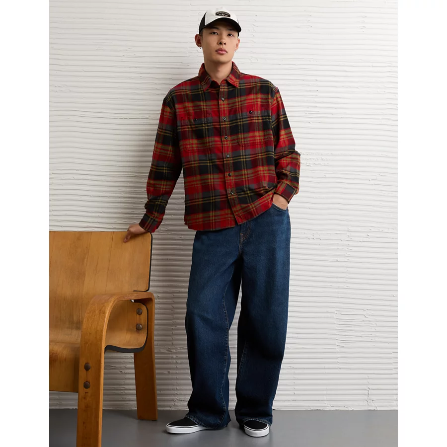 AE Relaxed Fit Everyday Flannel Shirt – Red