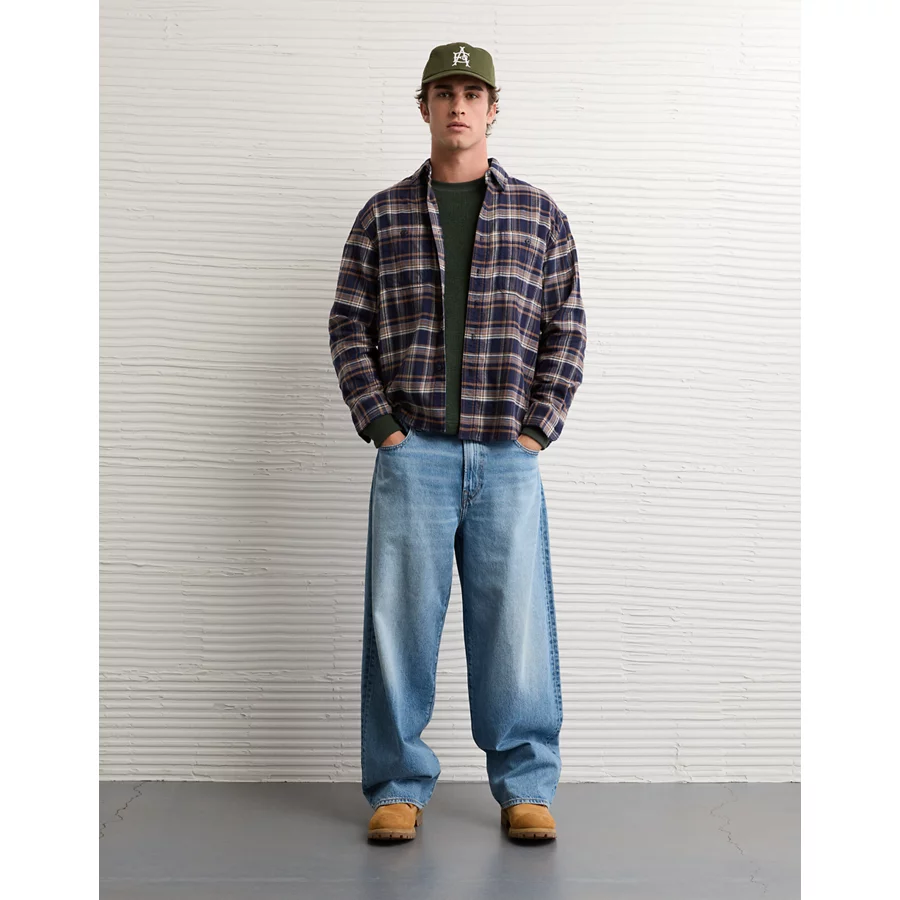 AE Relaxed Fit Everyday Flannel Shirt - Cerulean Blue