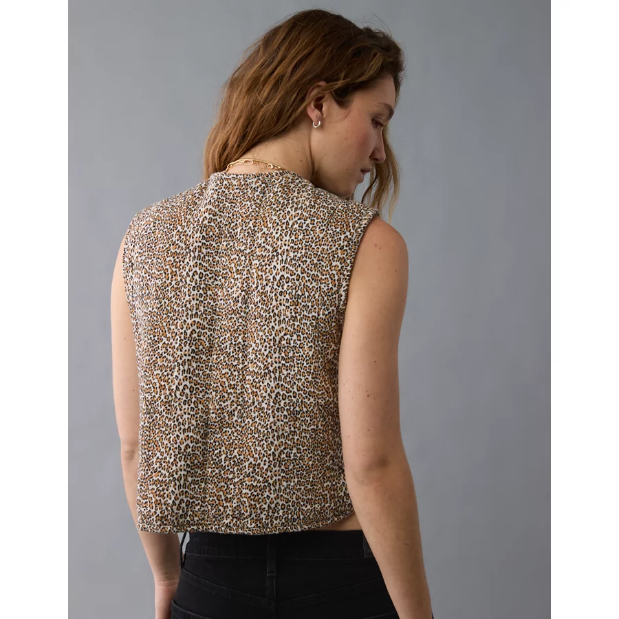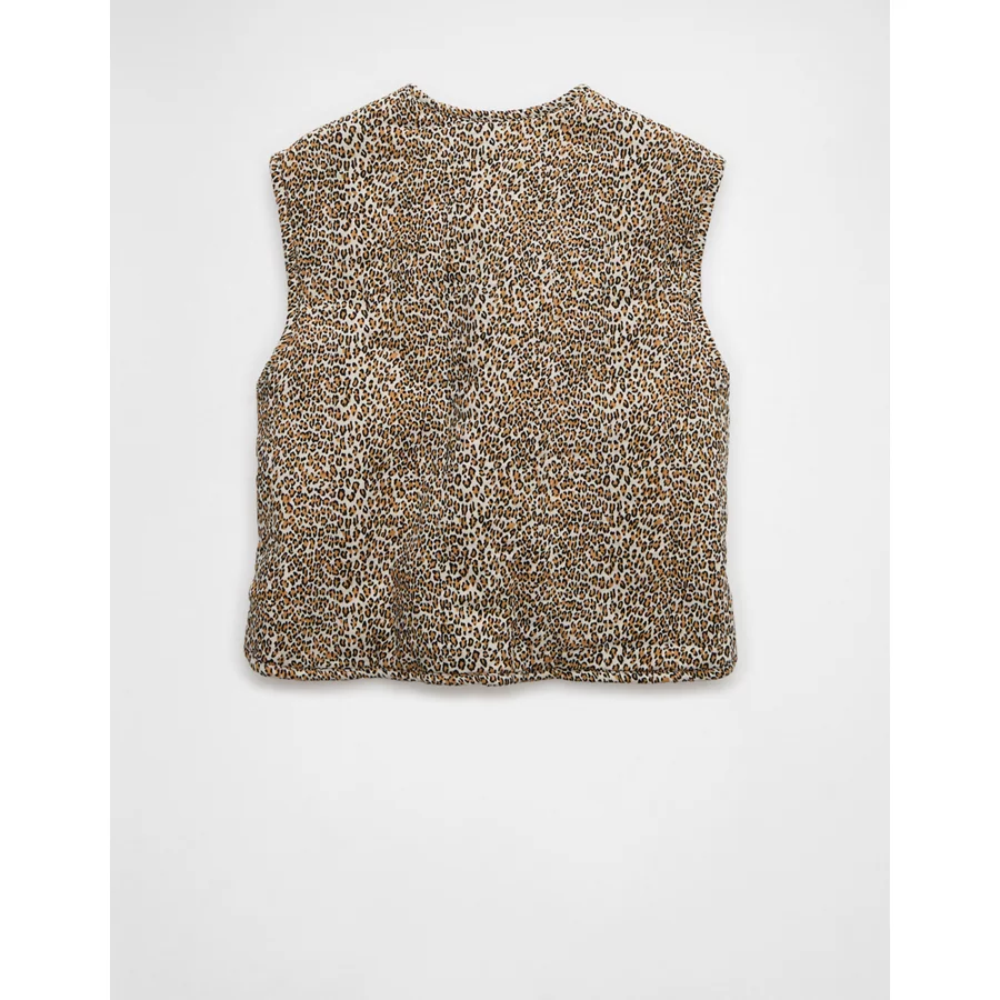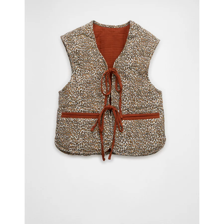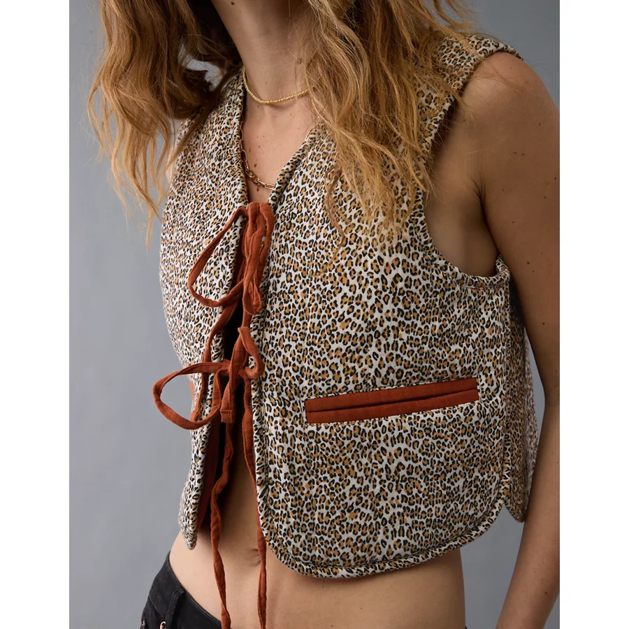 AE Reversible Leopard Tie Front Quilted Vest – Brown