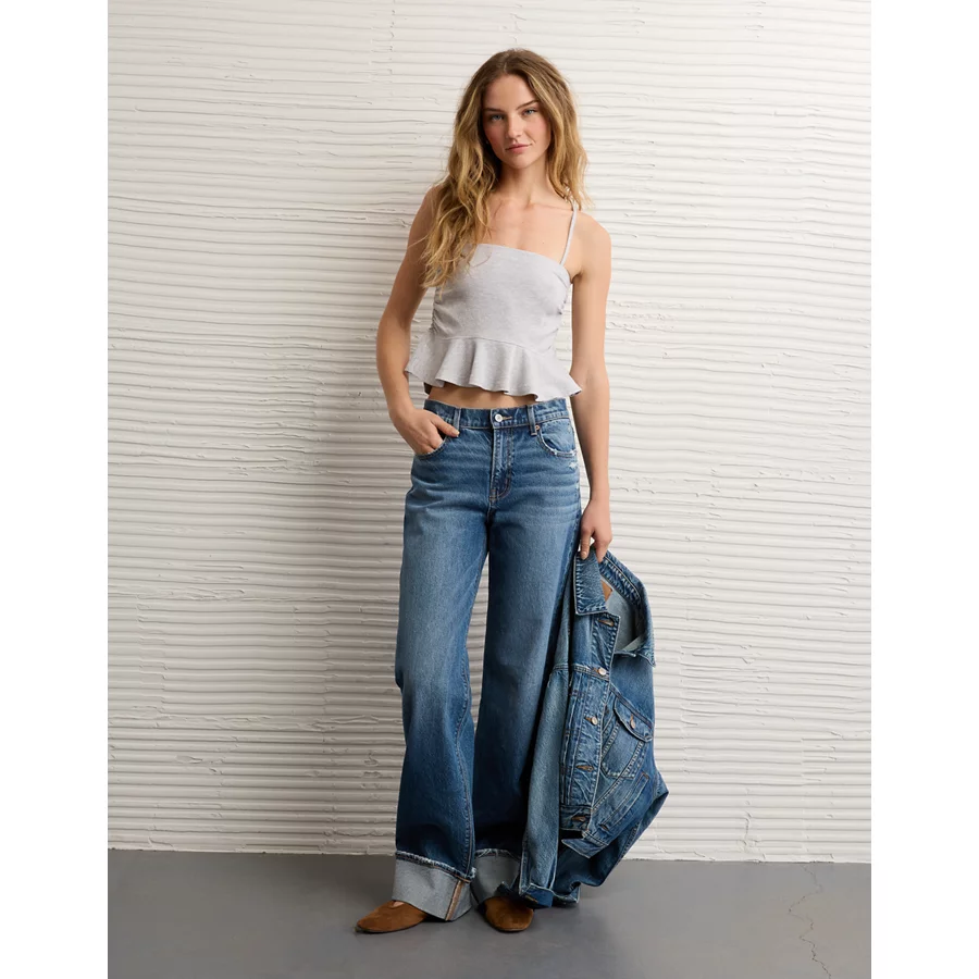 AE Ruched Peplum Tank Top With Removable Straps – Heather Gray