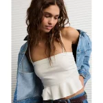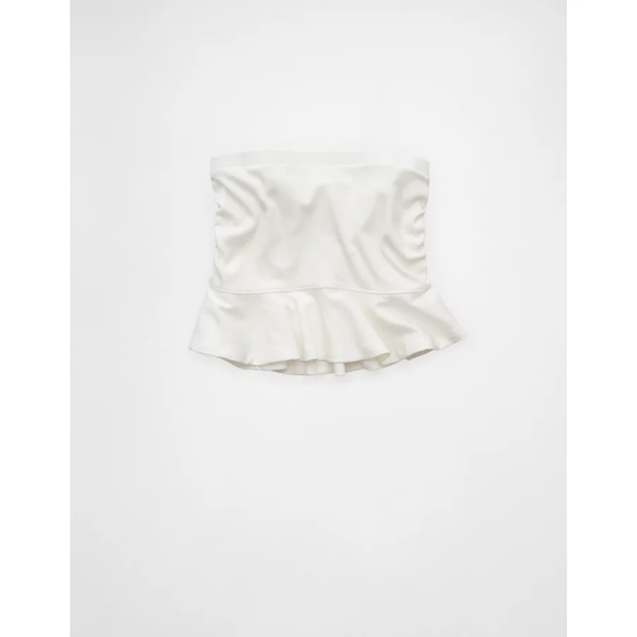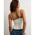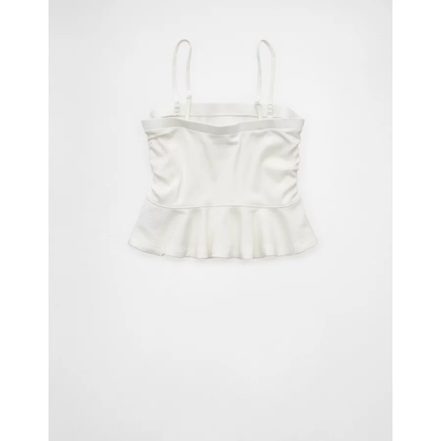 AE Ruched Peplum Tank Top With Removable Straps – Raw White