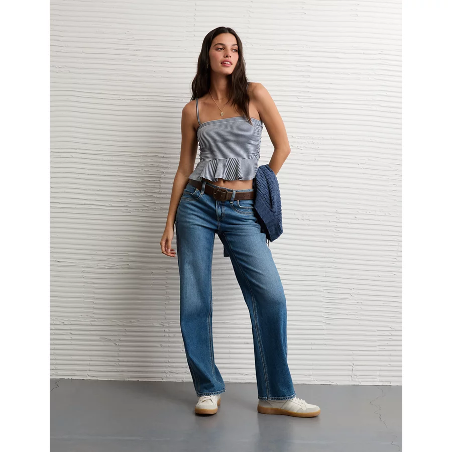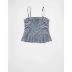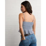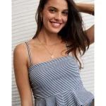 AE Ruched Peplum Tank Top With Removable Straps – Retro Indigo Stripe