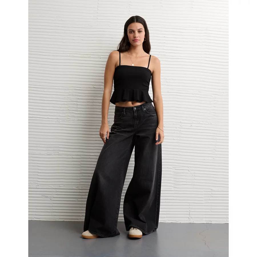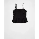 AE Ruched Peplum Tank Top With Removable Straps – True Black