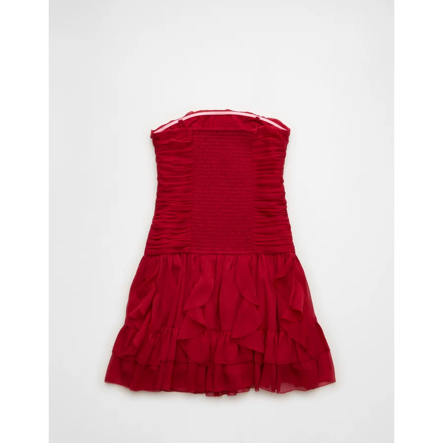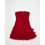 AE Ruched Ruffle Mini Dress – Warm Red