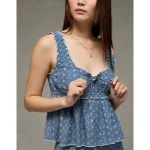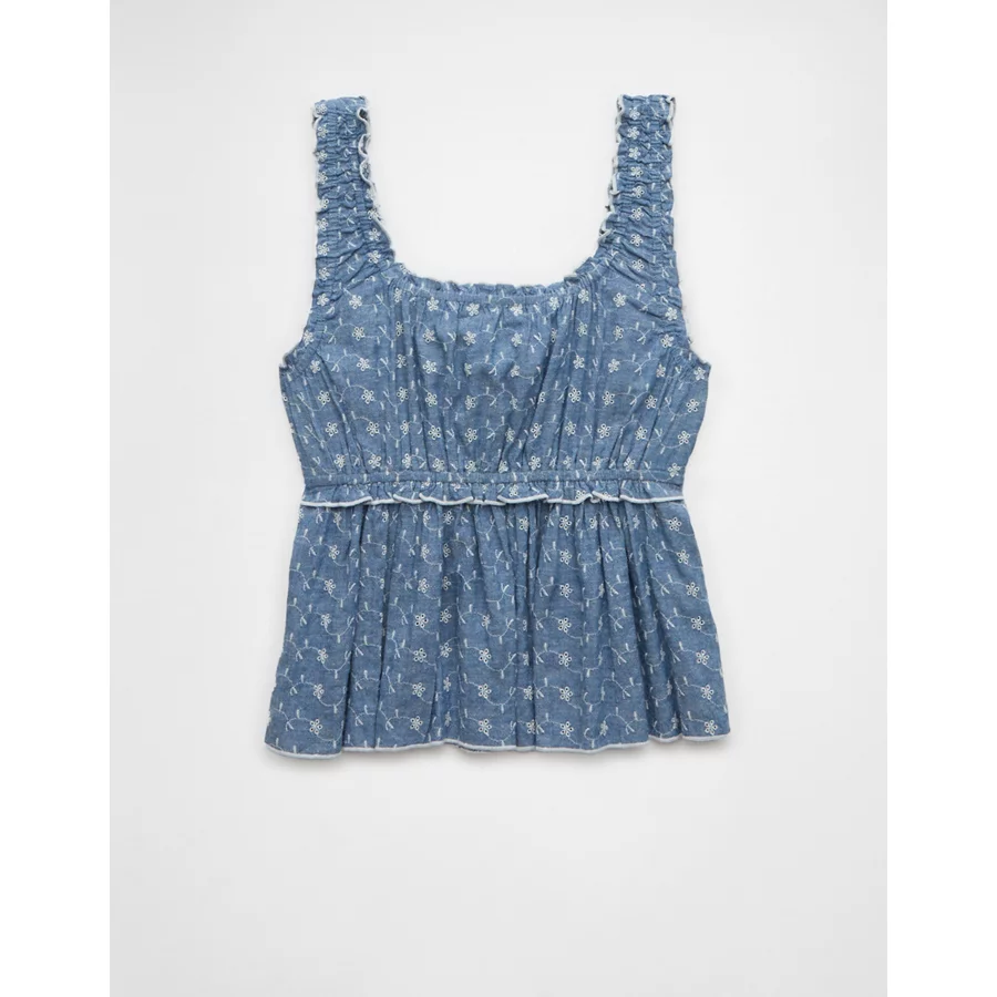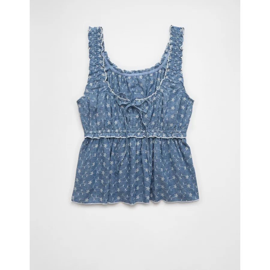AE Ruched Strap Cropped Tank Top – Light Blue