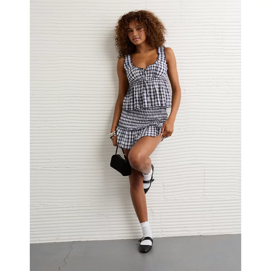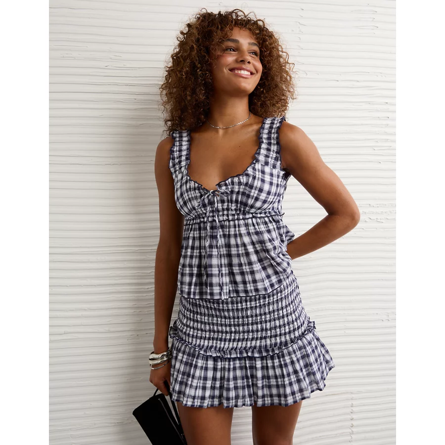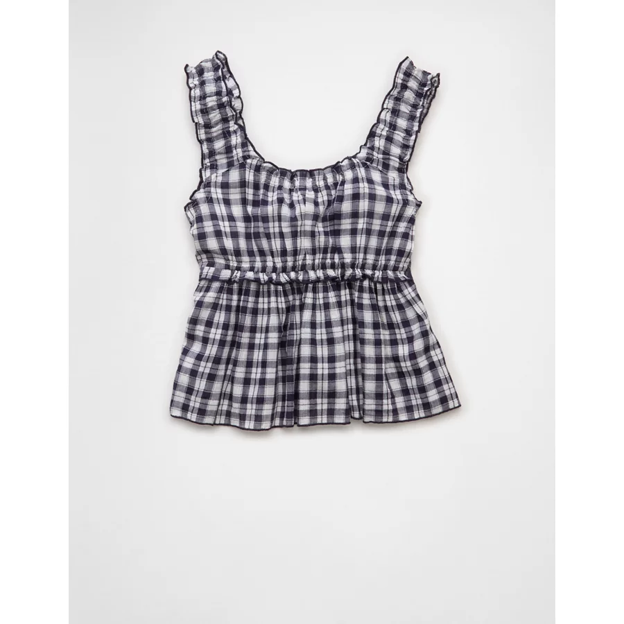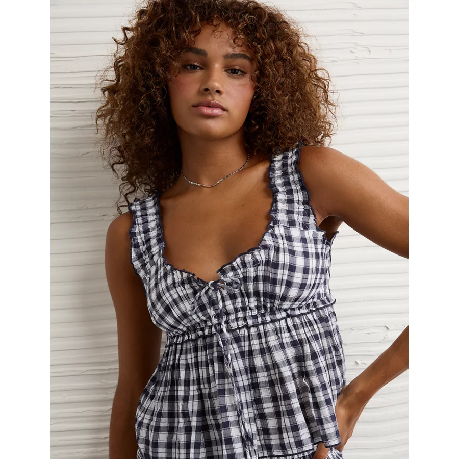 AE Ruched Strap Cropped Tank Top - Light Blue
