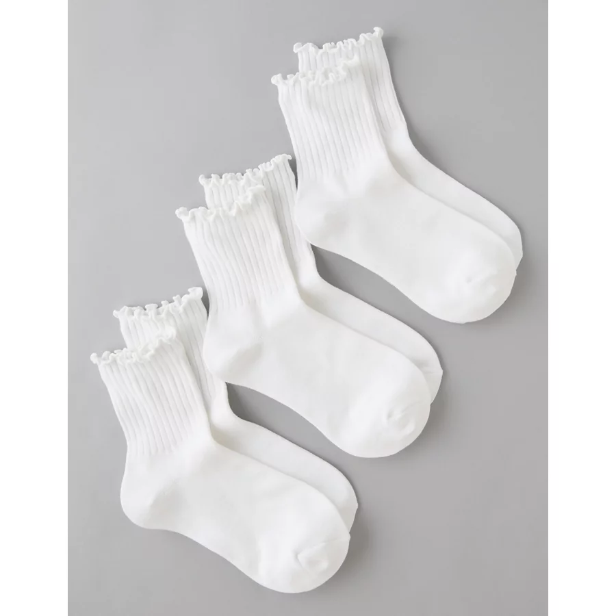 AE Ruffle Cropped Crew Socks 3-Pack – White