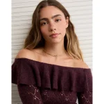 AE Ruffle Off-The-Shoulder Sweater – Moonlight