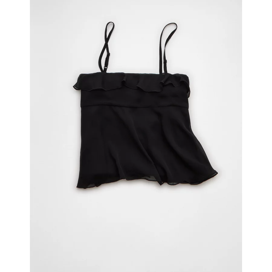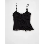 AE Ruffle Tie-Front Cami Top – Black