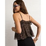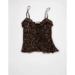 AE Ruffle Tie-Front Cami Top - Brown