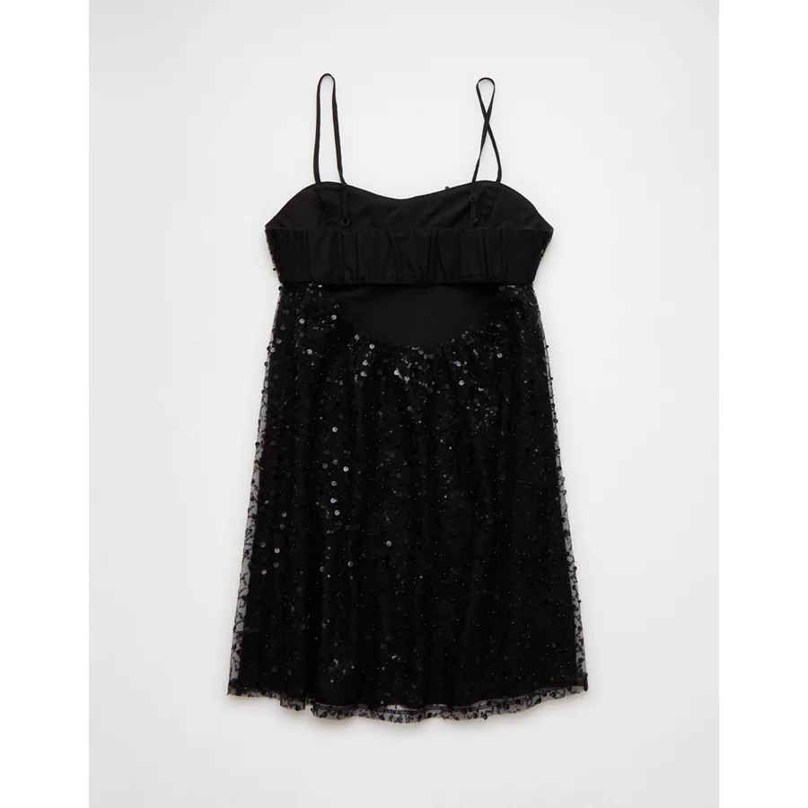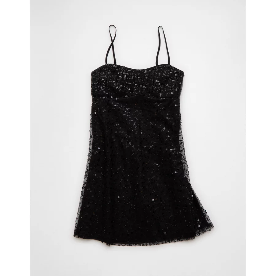AE Satin Sweetheart Mini Slip Dress – Black