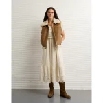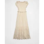 AE Scoop Neck Smocked Midi Dress – Cream