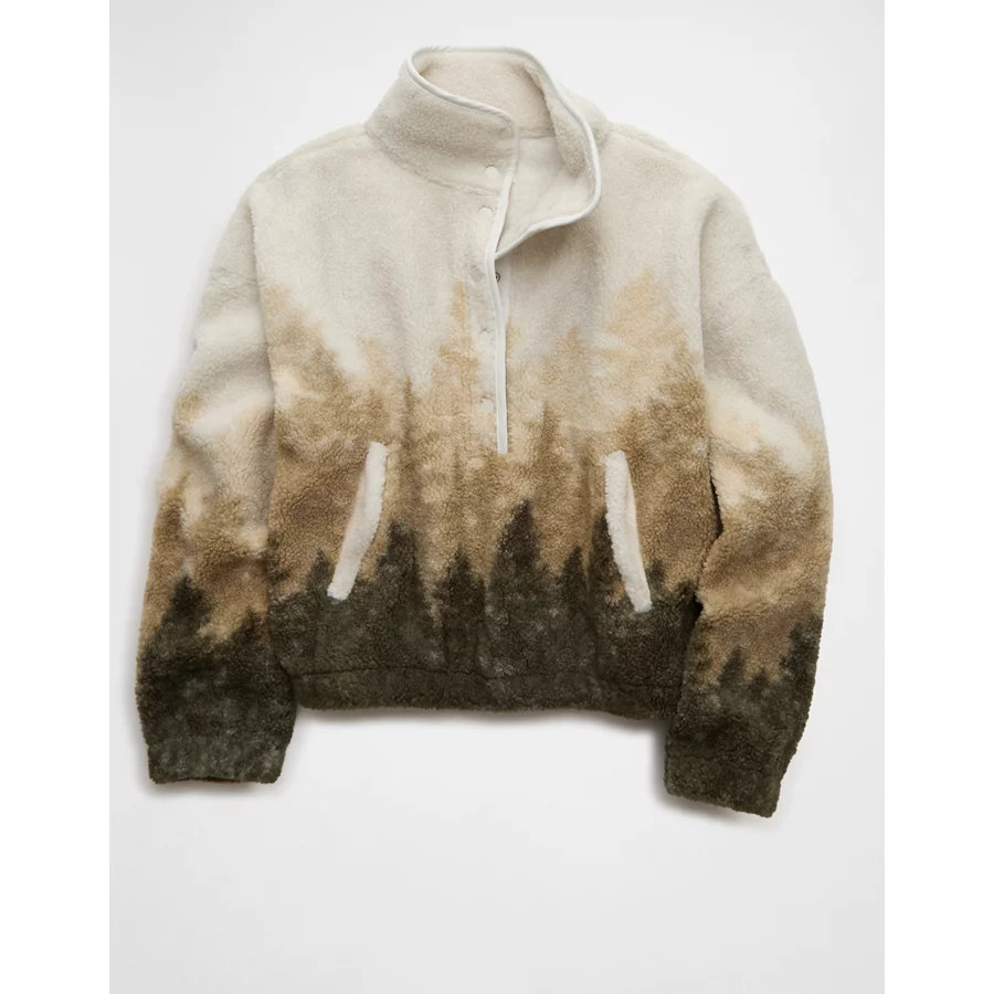 AE Sherpa Fleece Graphic Henley Sweatshirt – Green Alpine