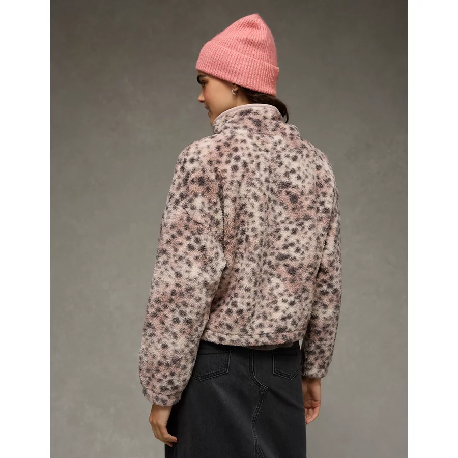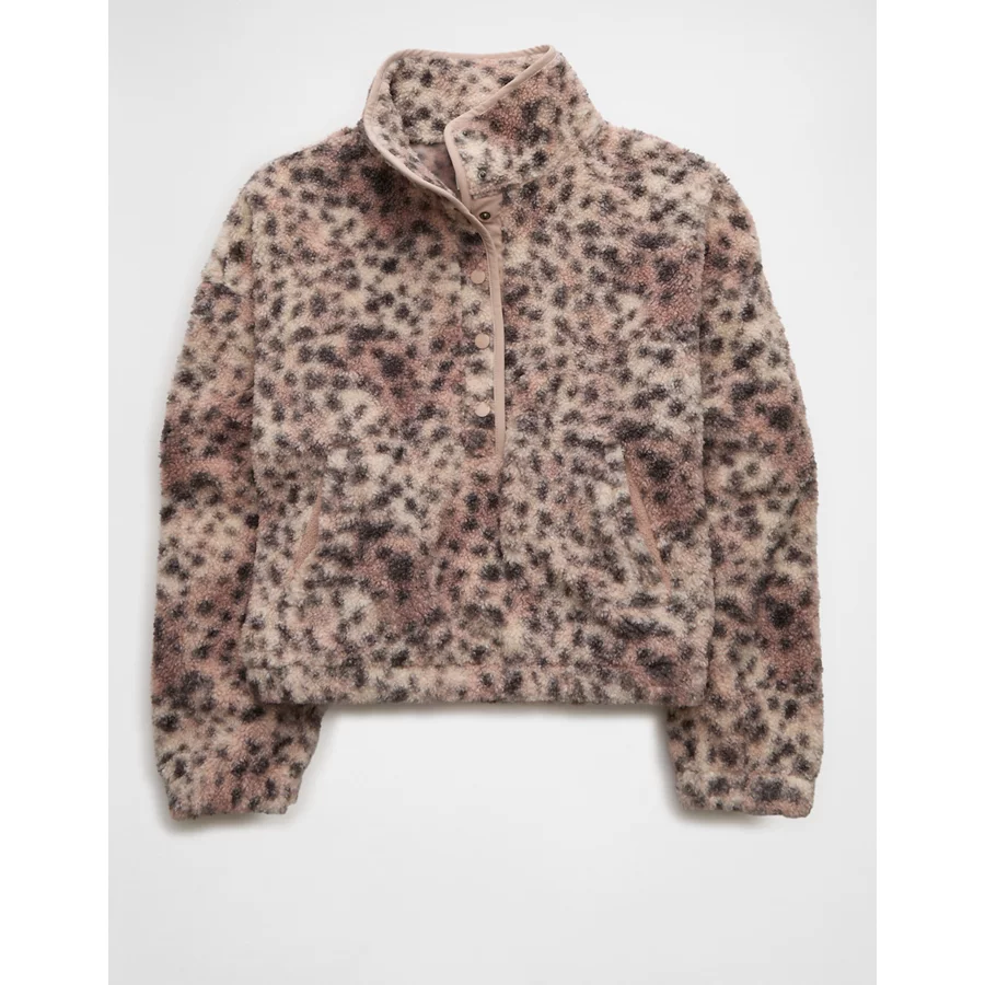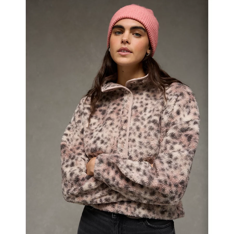 AE Sherpa Fleece Graphic Henley Sweatshirt – Naive Pink