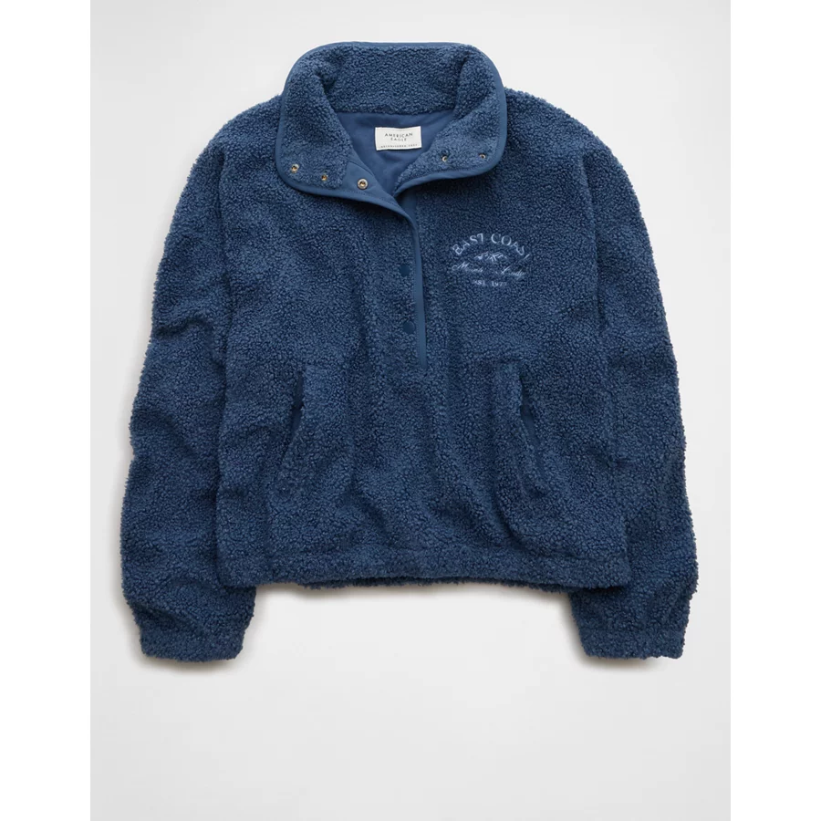 AE Sherpa Fleece Graphic Henley Sweatshirt – Navy