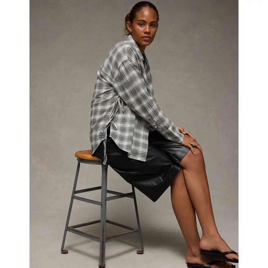 Vegan leather with stretch 96% Polyester, 4% SpandexHand washImported Low rise | 11 3/4 front rise15 inseam28 leg opening