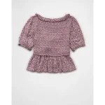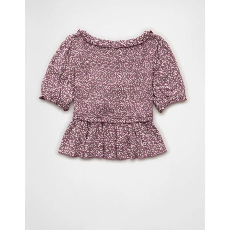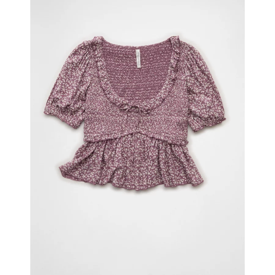 AE Smocked Babydoll Blouse – Purple