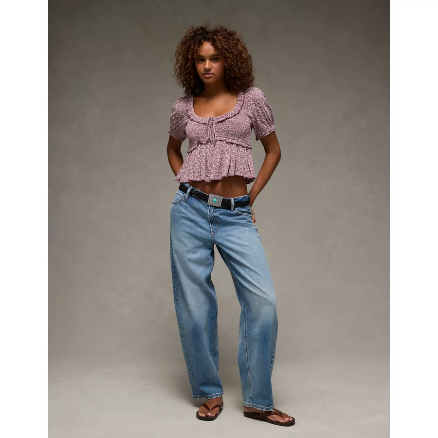 AE Smocked Babydoll Blouse - Moonlight