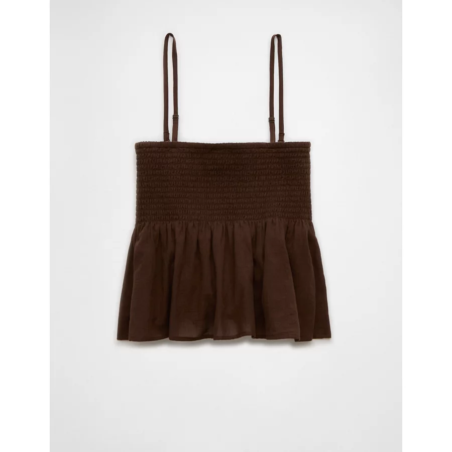 AE Smocked Babydoll Bow Tank Top – Chocolate