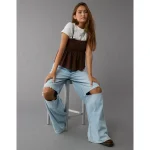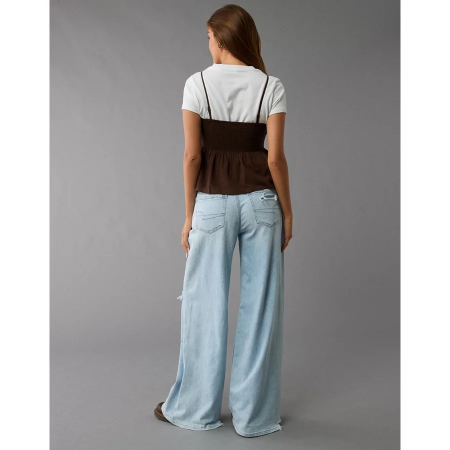 AE Smocked Babydoll Bow Tank Top - Light Blue