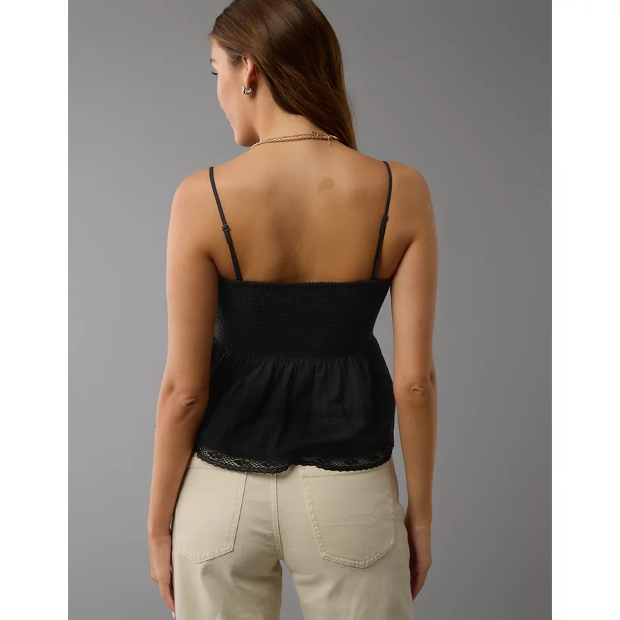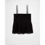 AE Smocked Babydoll Cami Tank Top – True Black