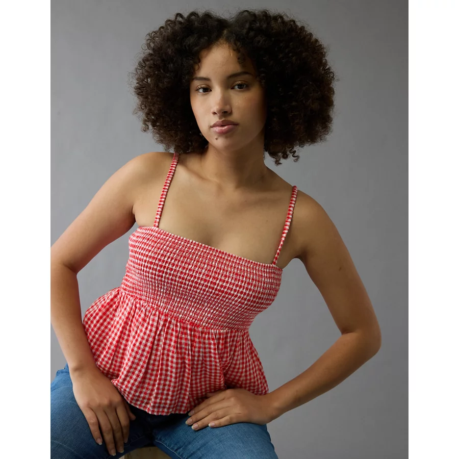 AE Smocked Gingham Babydoll Cami – Red