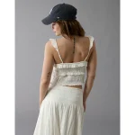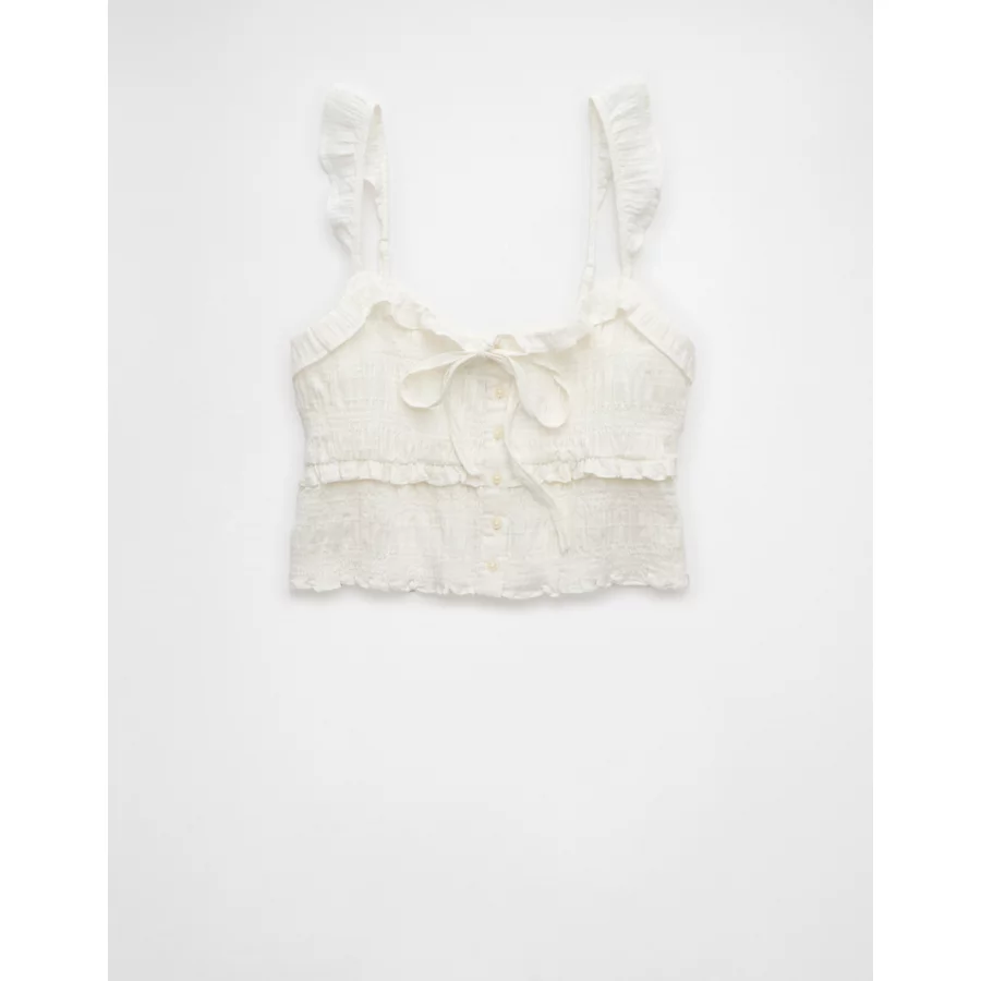AE Smocked Ruffle Tank Top – White