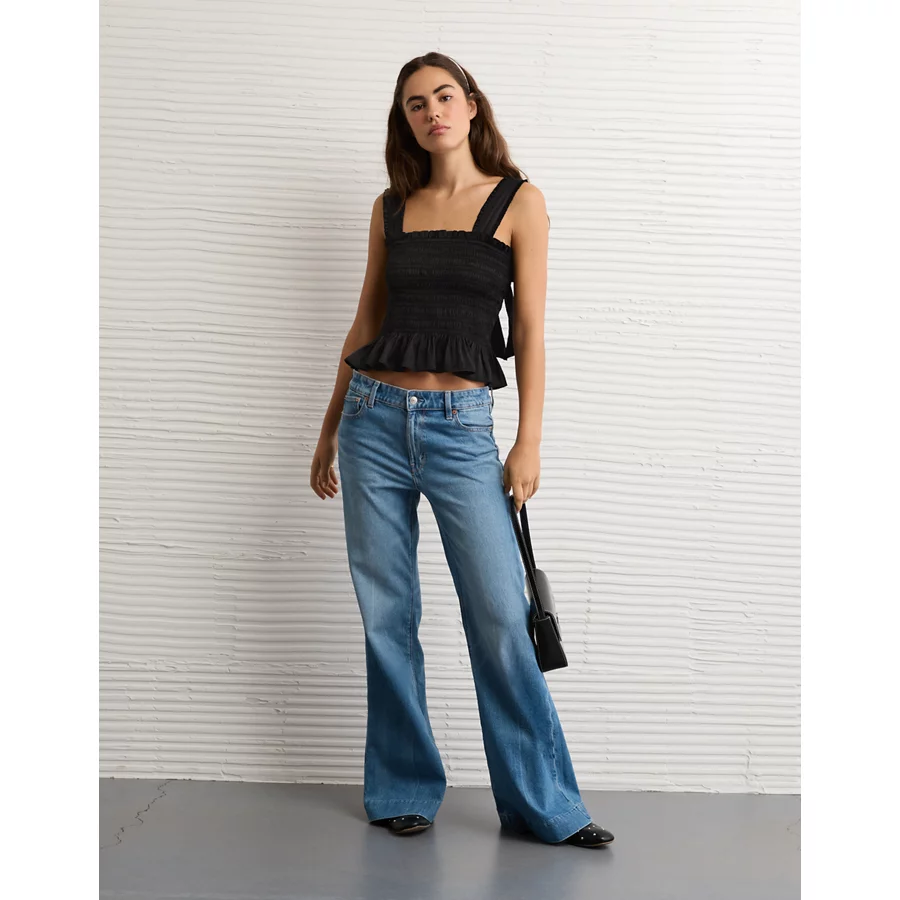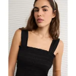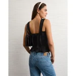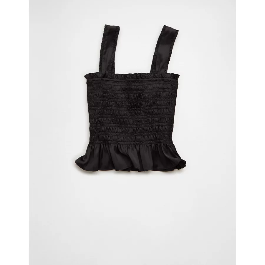 AE Smocked Tie Side Button-Up Tank Top - Cream