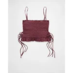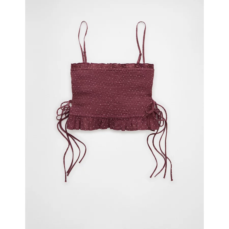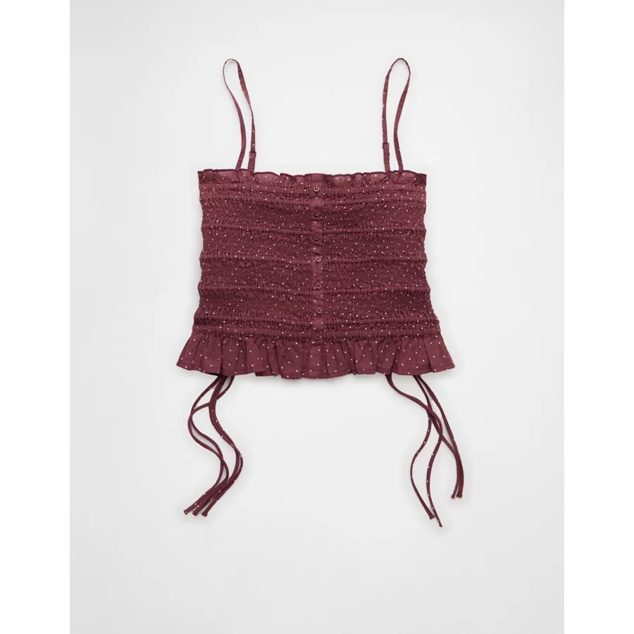 AE Smocked Tie Side Button-Up Tank Top – Burgundy