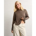 AE Soft & Sexy Long Sleeve Mockneck T-Shirt – Brown