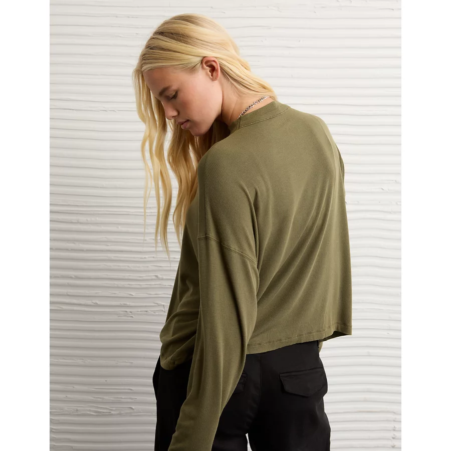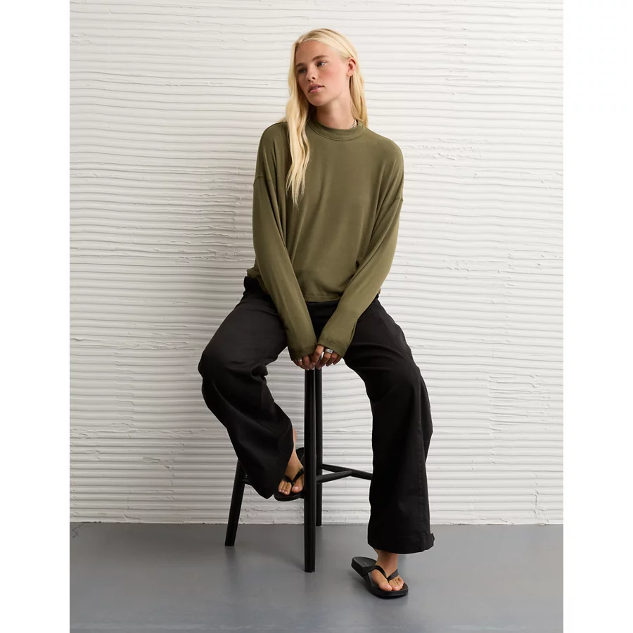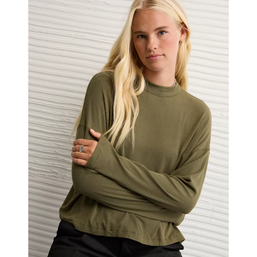 AE Soft & Sexy Long Sleeve Mockneck T-Shirt – Olive