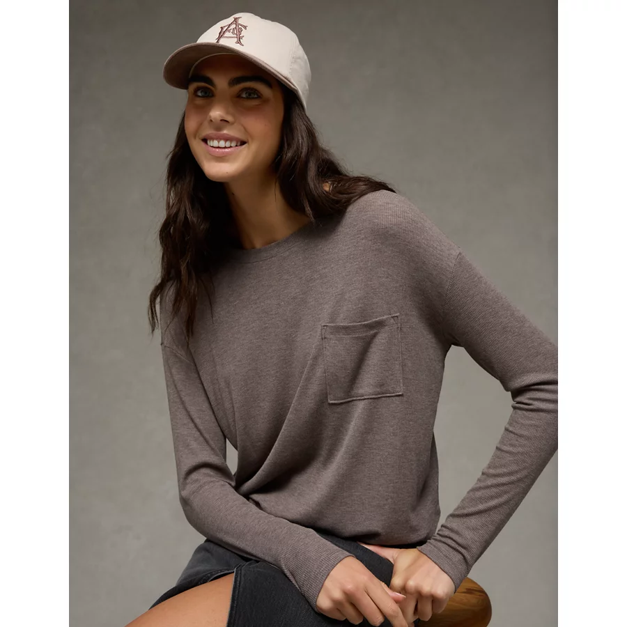 AE Soft & Sexy Long Sleeve Pocket T-Shirt – Coffee