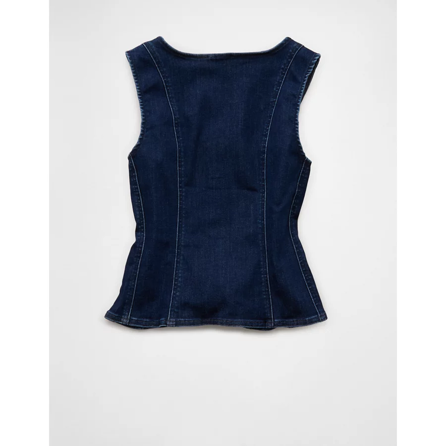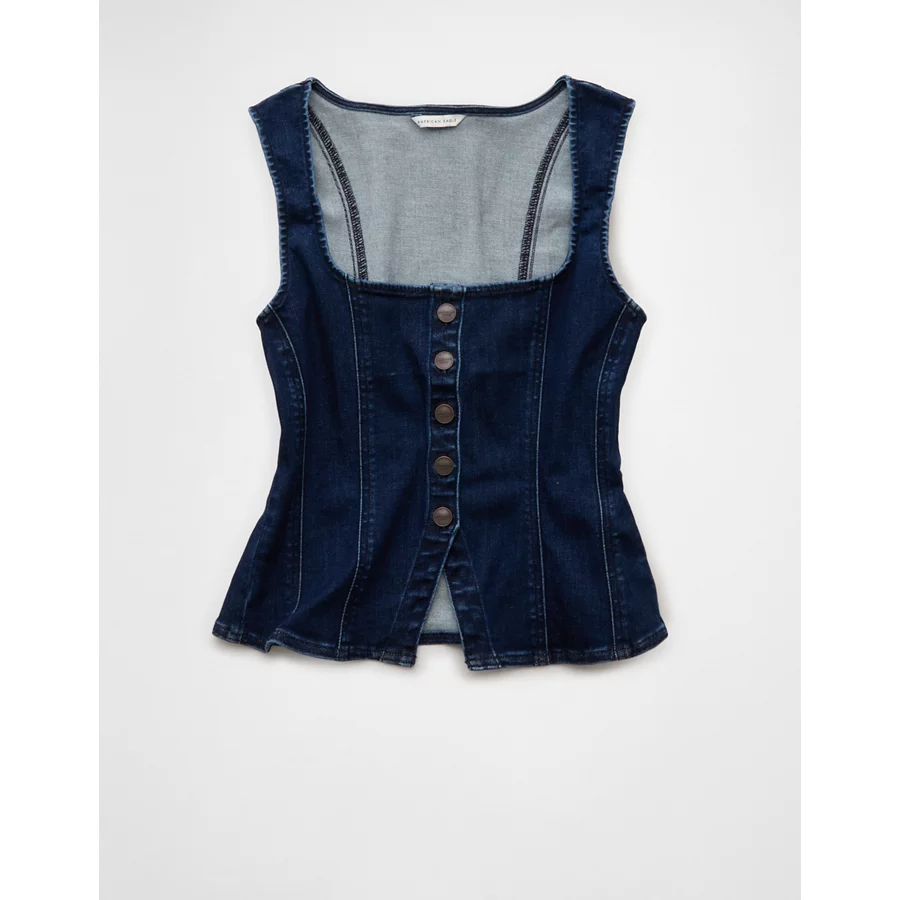 AE Square Neck Button-Up Denim Vest – Dark Wash