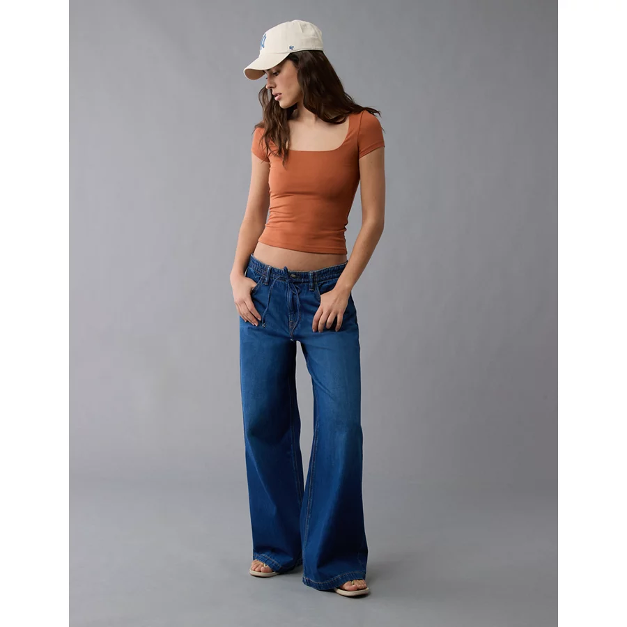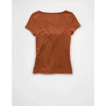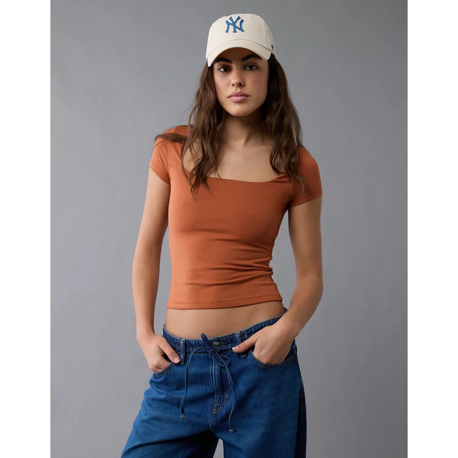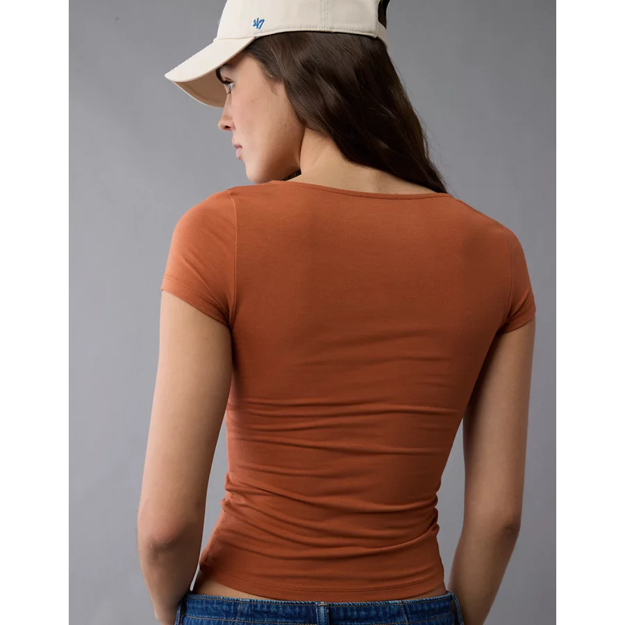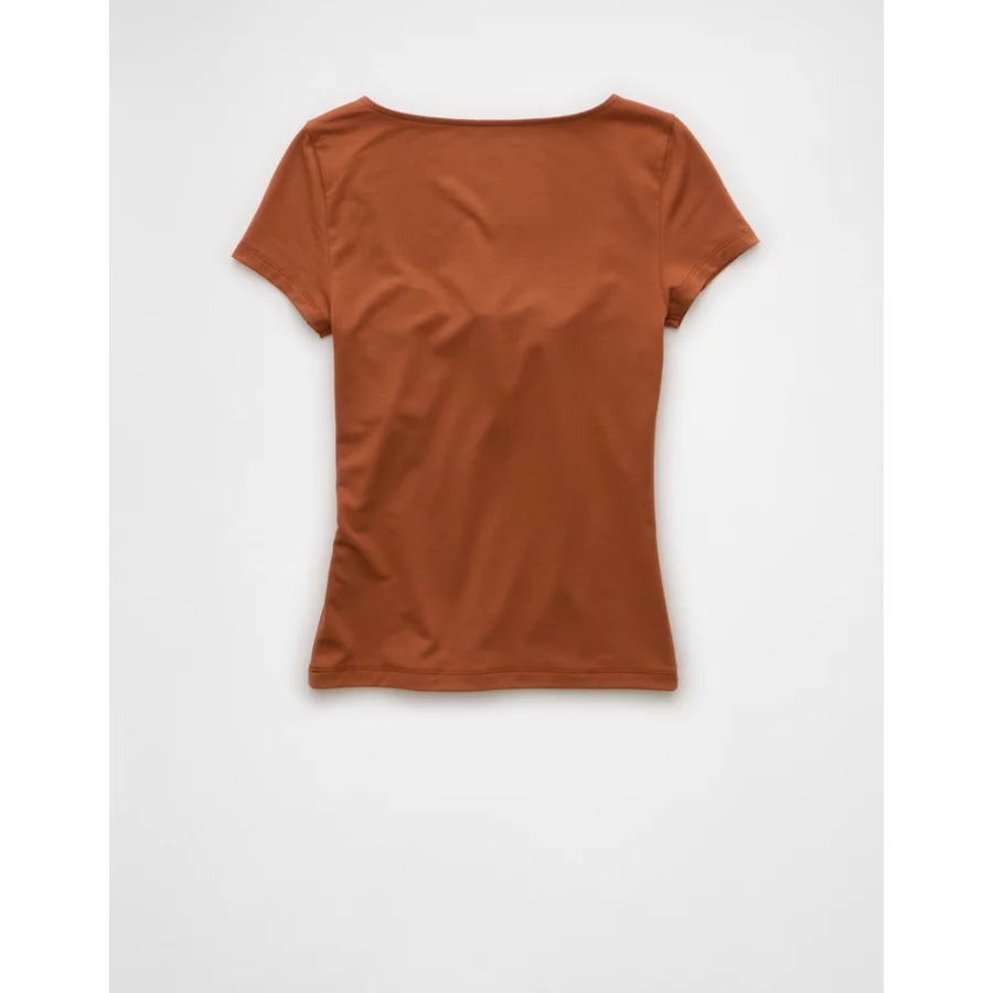 AE Square Neck Hey Baby Tee – Brown