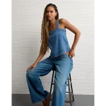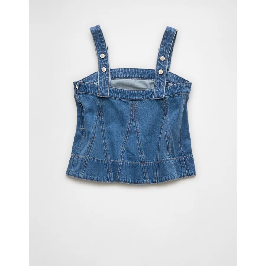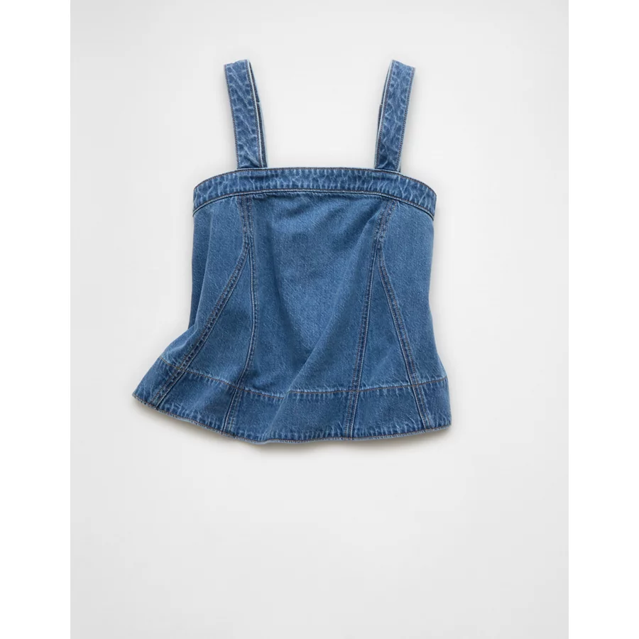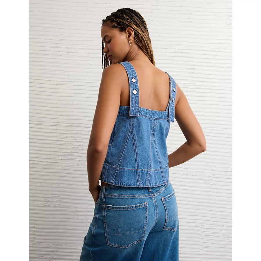 AE Square Neck Pieced Denim Tank Top – Medium Wash