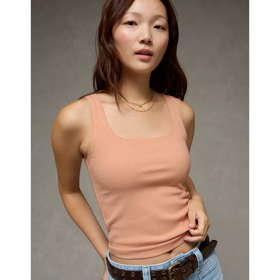 AE Square Neck Plush Tank Top - Medium Heather Gray